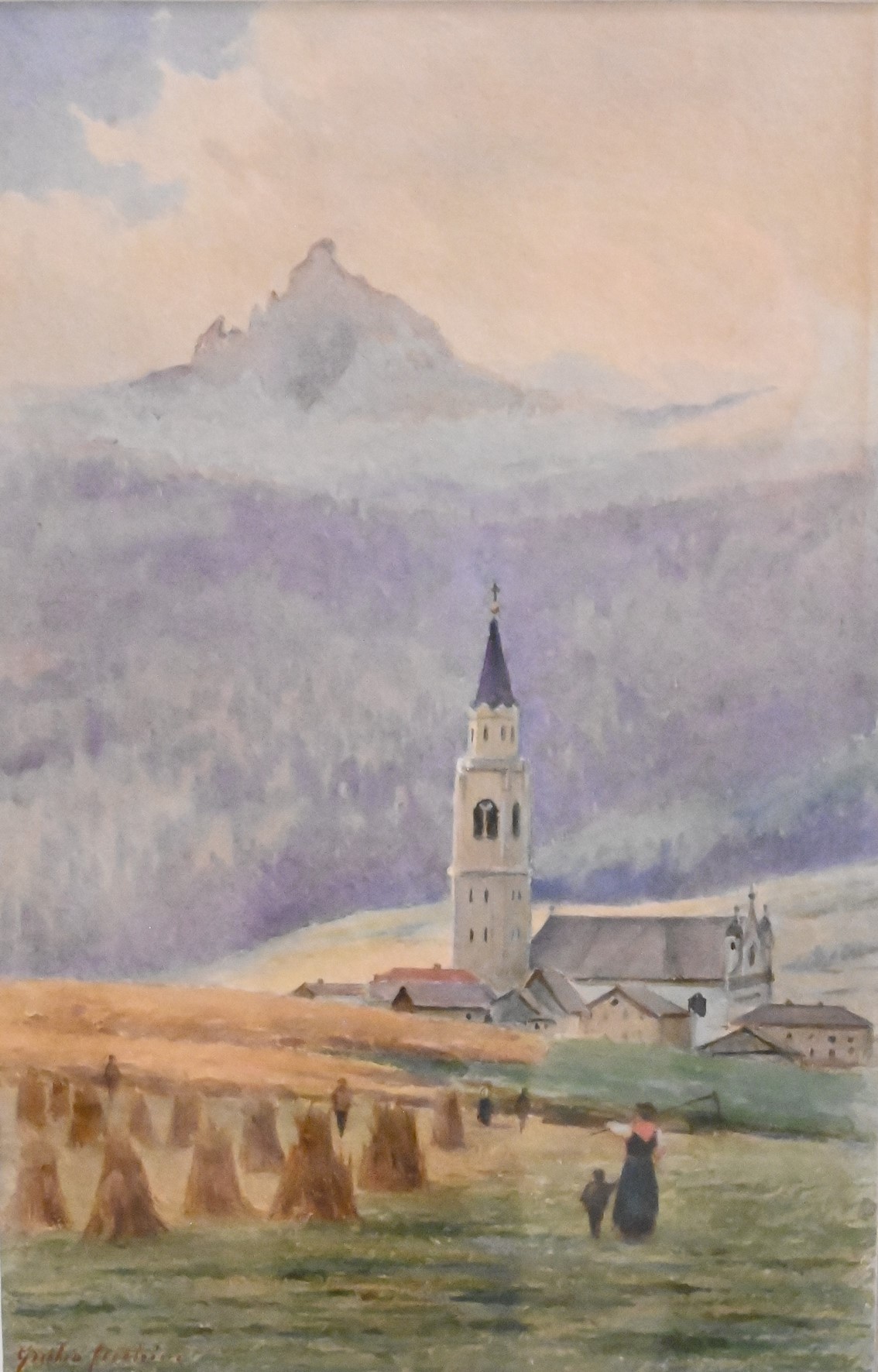 Condition: two watercolor sketches in one frame, tack marks in corners, paper undulation, overall good condition