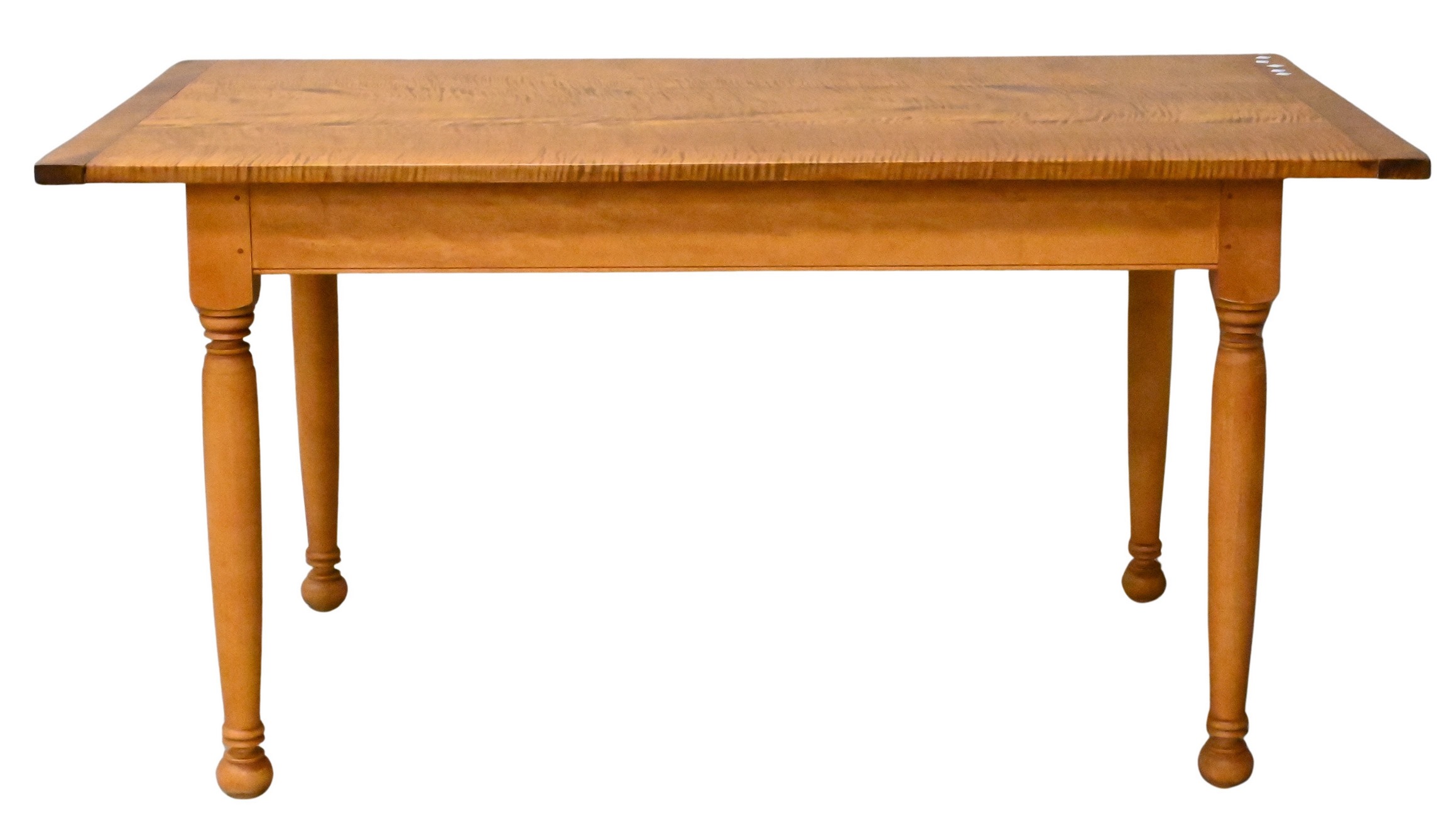having breadboard ends, scalloped apron, turned legs and set on Spanish feet