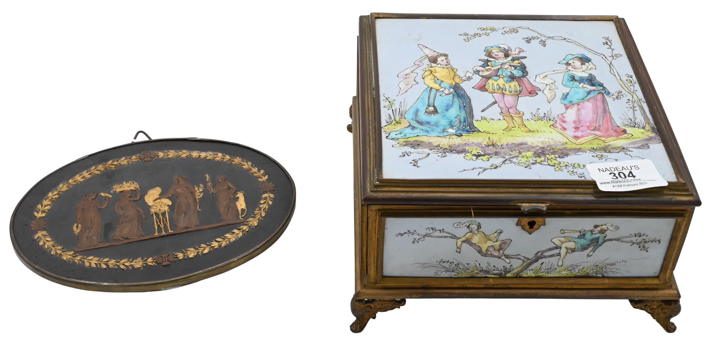 Nerikomi porcelain bowl signed on base “TH”, black porcelain plate having flower petals signed on base “TH”, blue gray porcelain plate having wave design signed on base “TH”