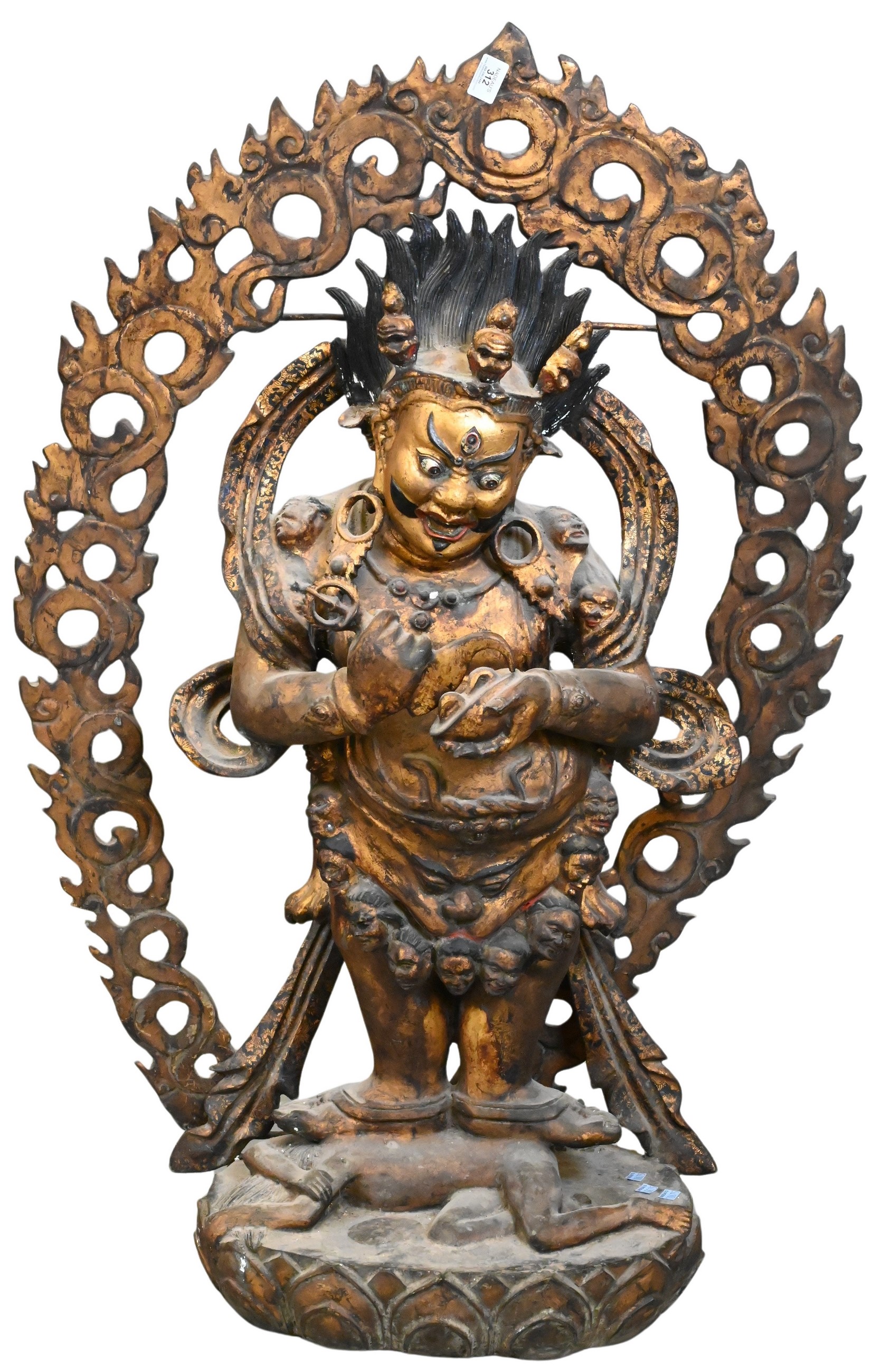 on lacquered wood base, inscribed “standing crane with antlers” in Chinese