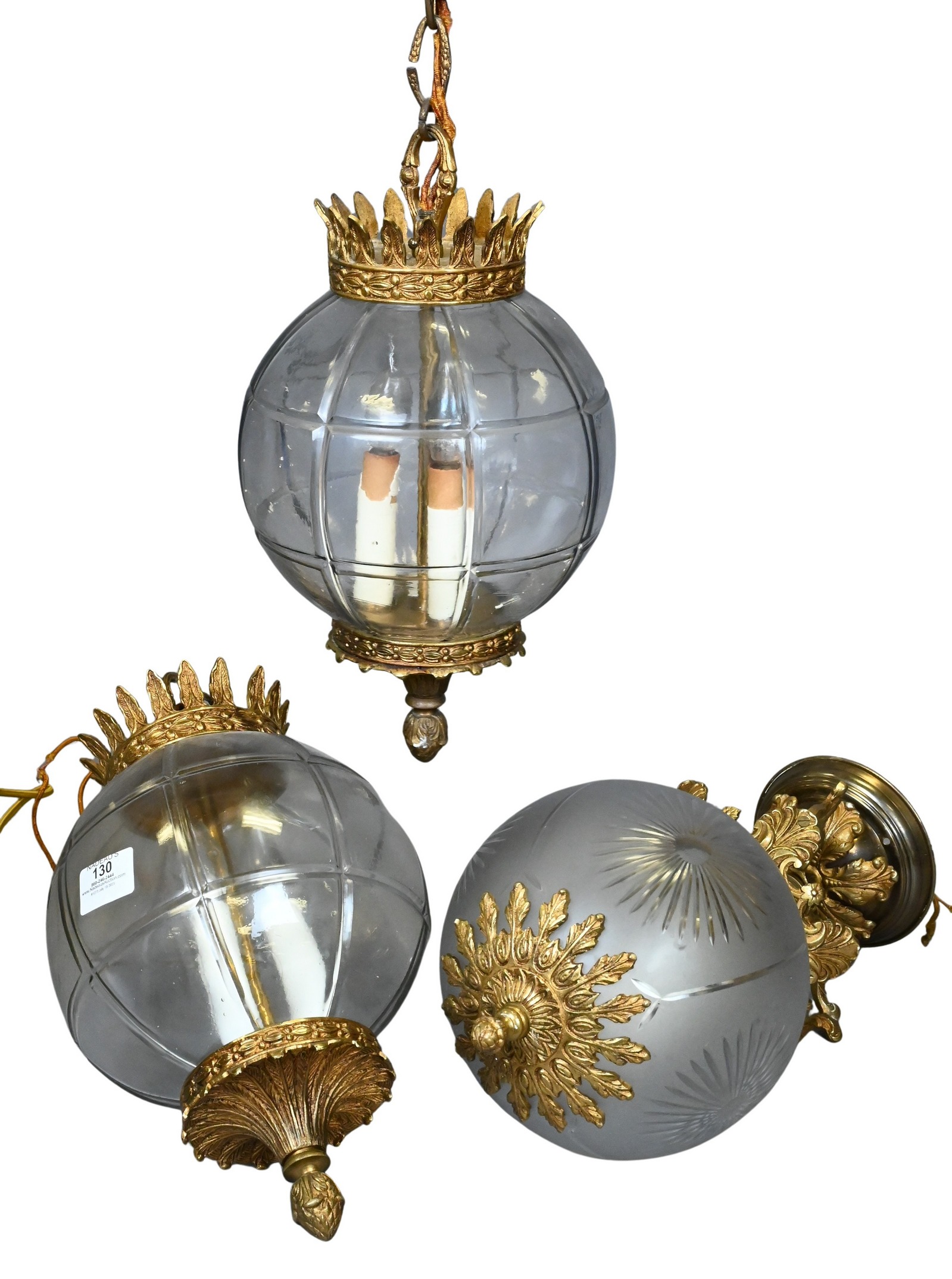 one having etched glass, all having acanthus leaf and scrolling foliate brass mounts