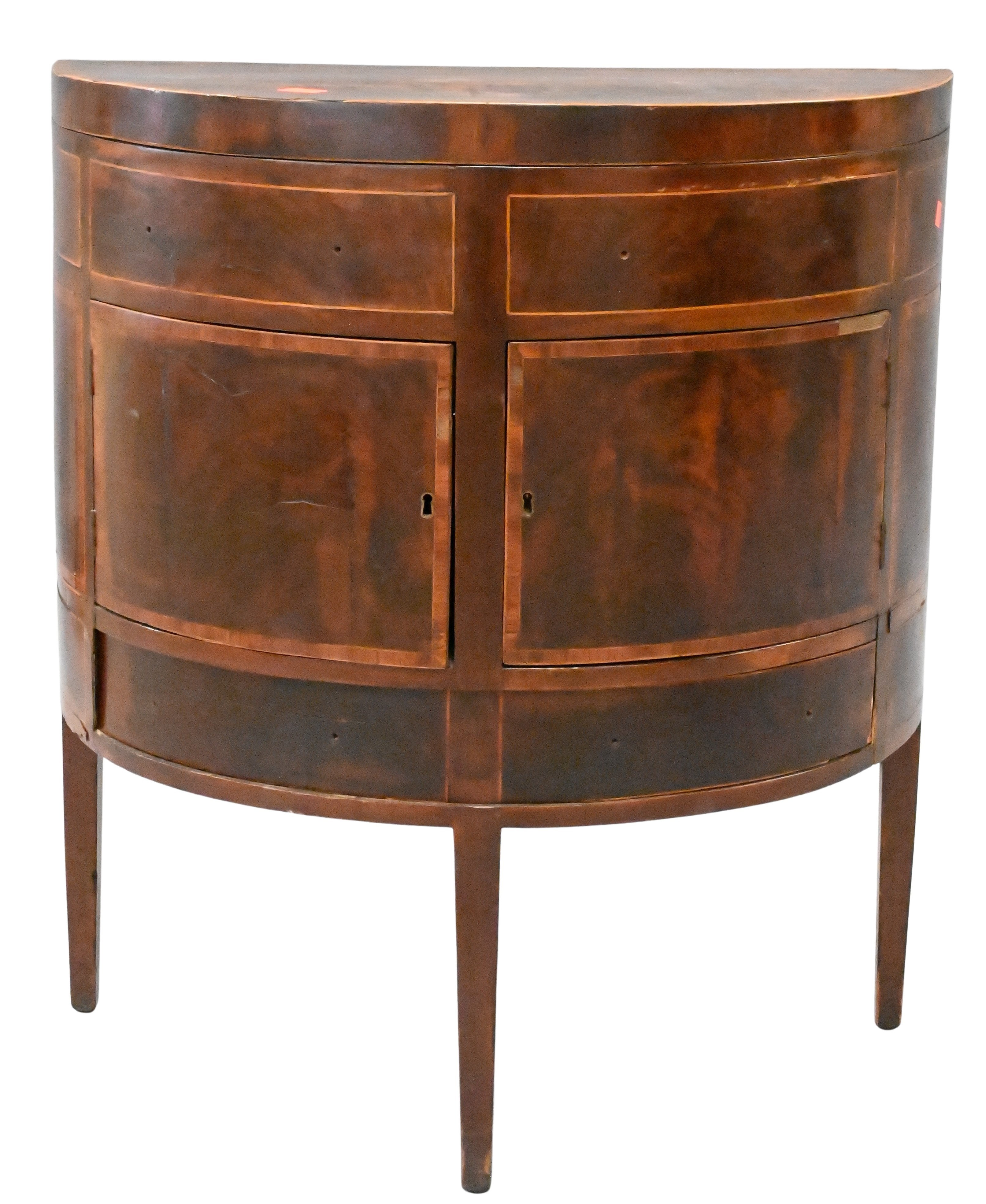 English Mahogany and Rosewood Cross-Banded Demilune Cellarette