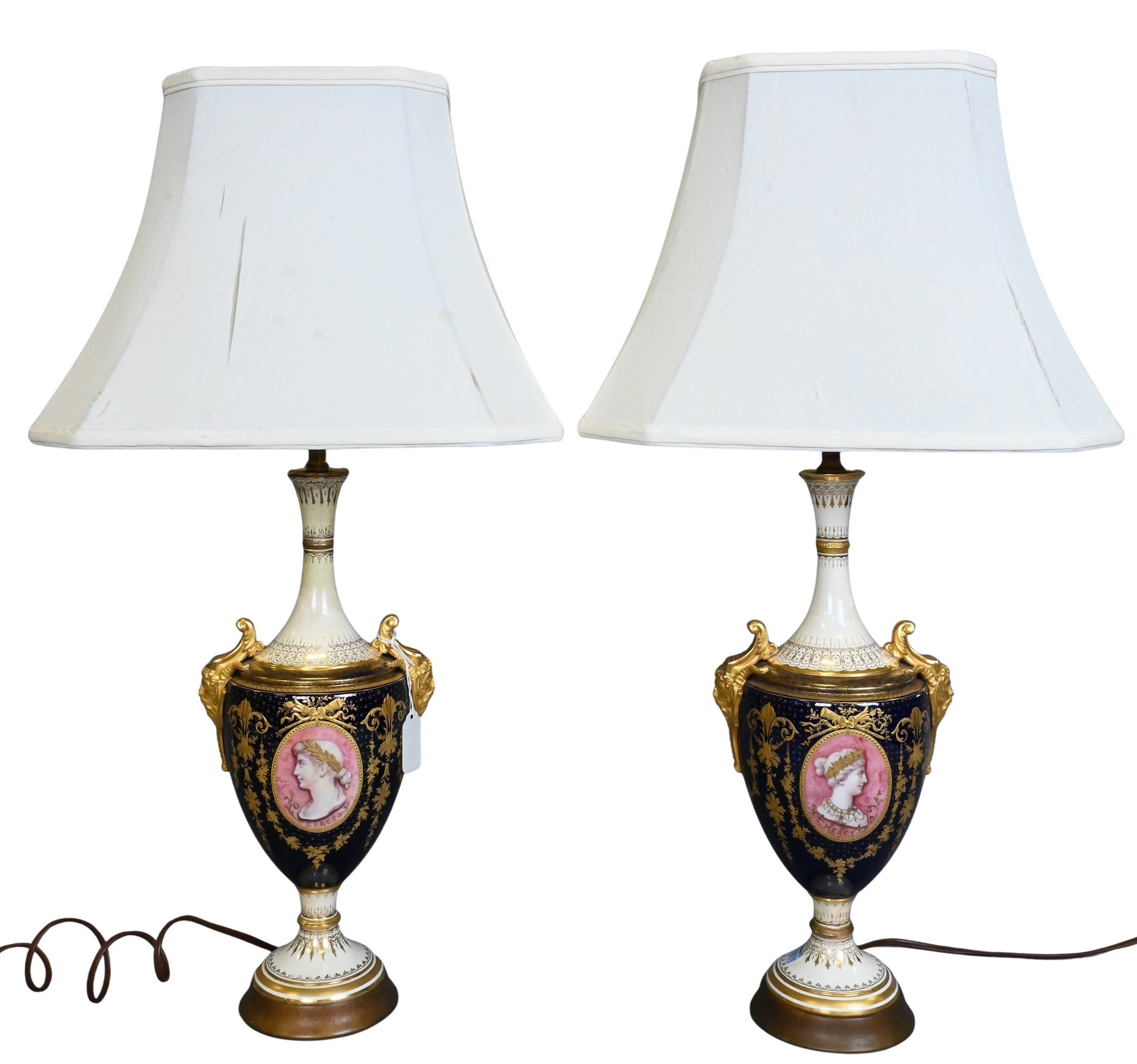 both having gilt figural handles of fawns centered by cameo busts of the goddesses Ceres and Hebe