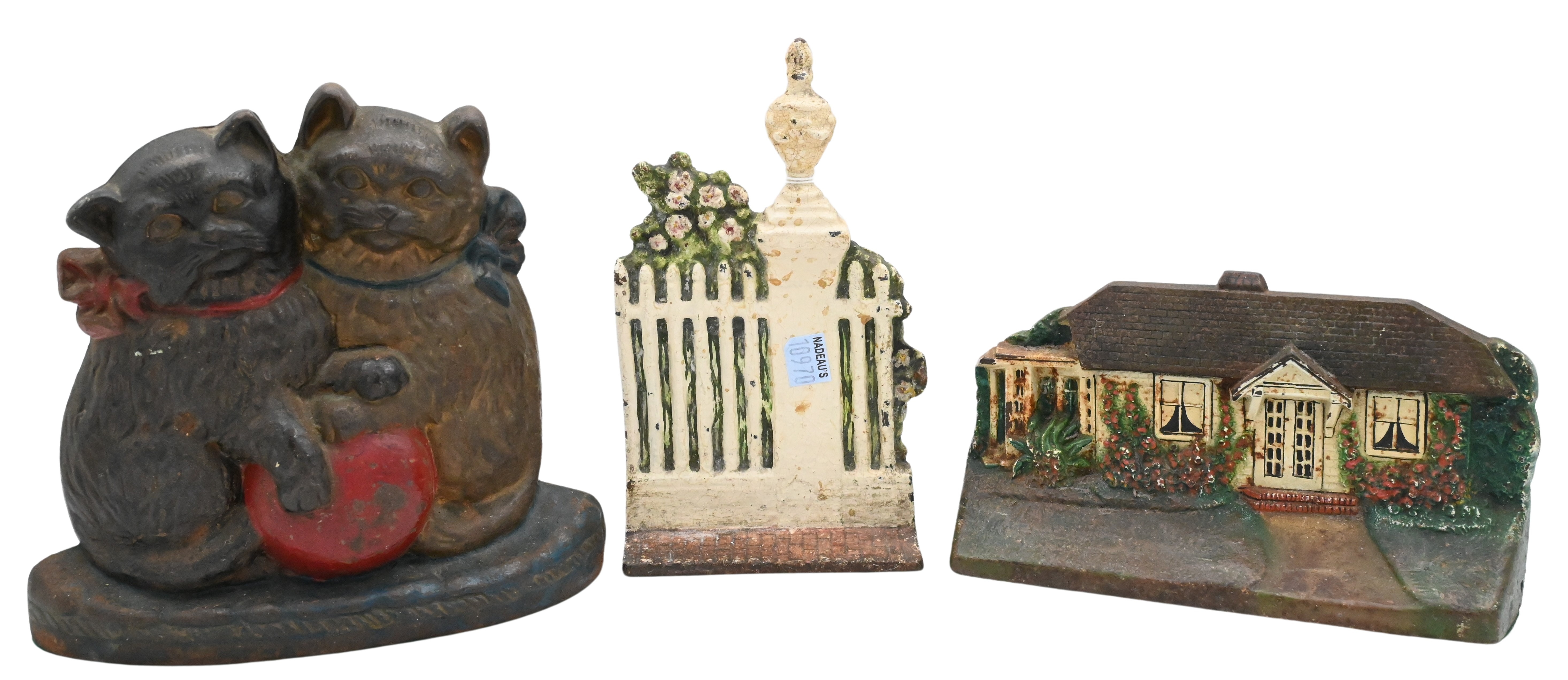 two kittens and wool, CJO Cottage Doorstop #1283, Sarah Symonds Cast iron Garden Gate Door Stop