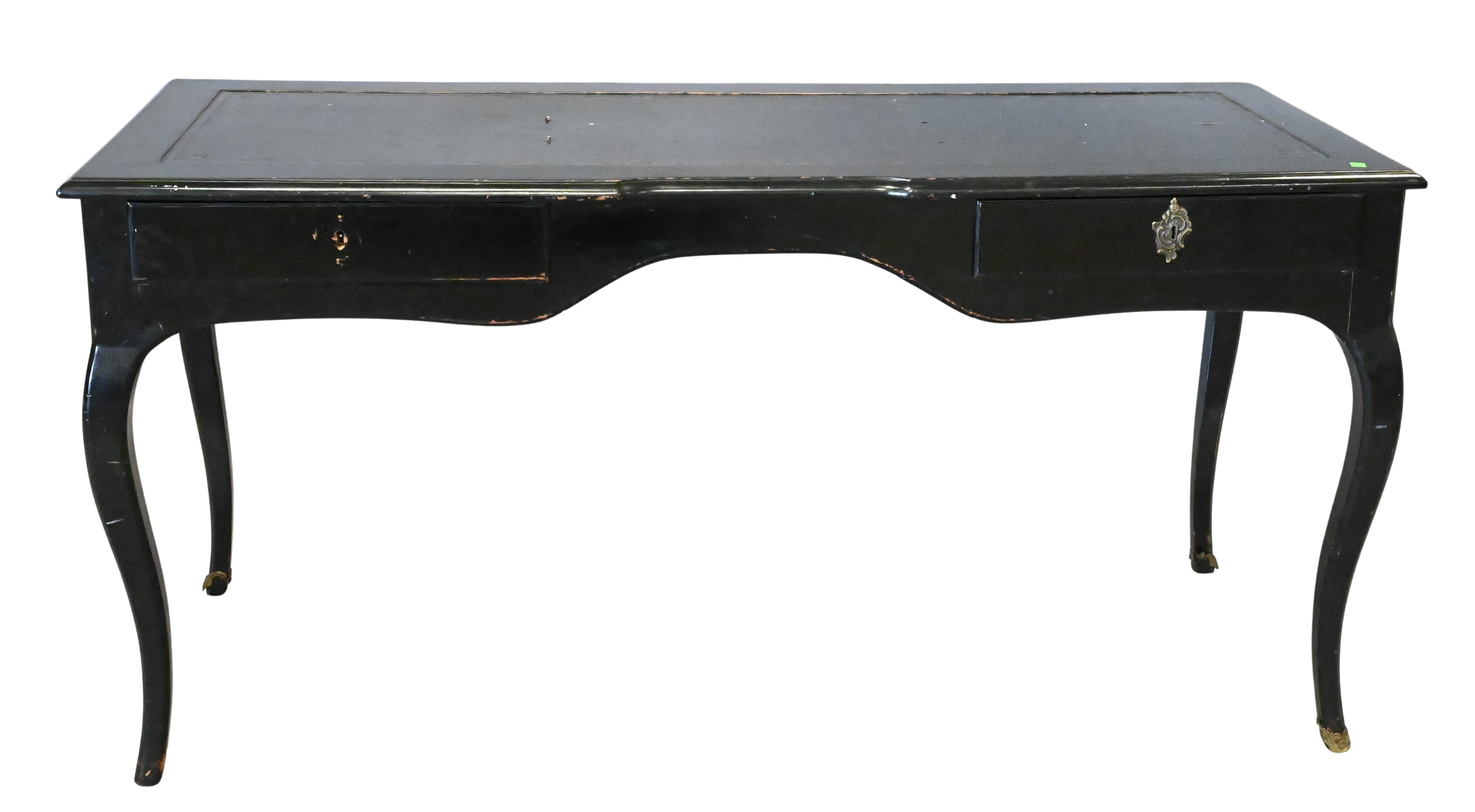 having leather top, two drawers, all over cabriole and brass capped feet, has old Logan and Brothers, New York paper label