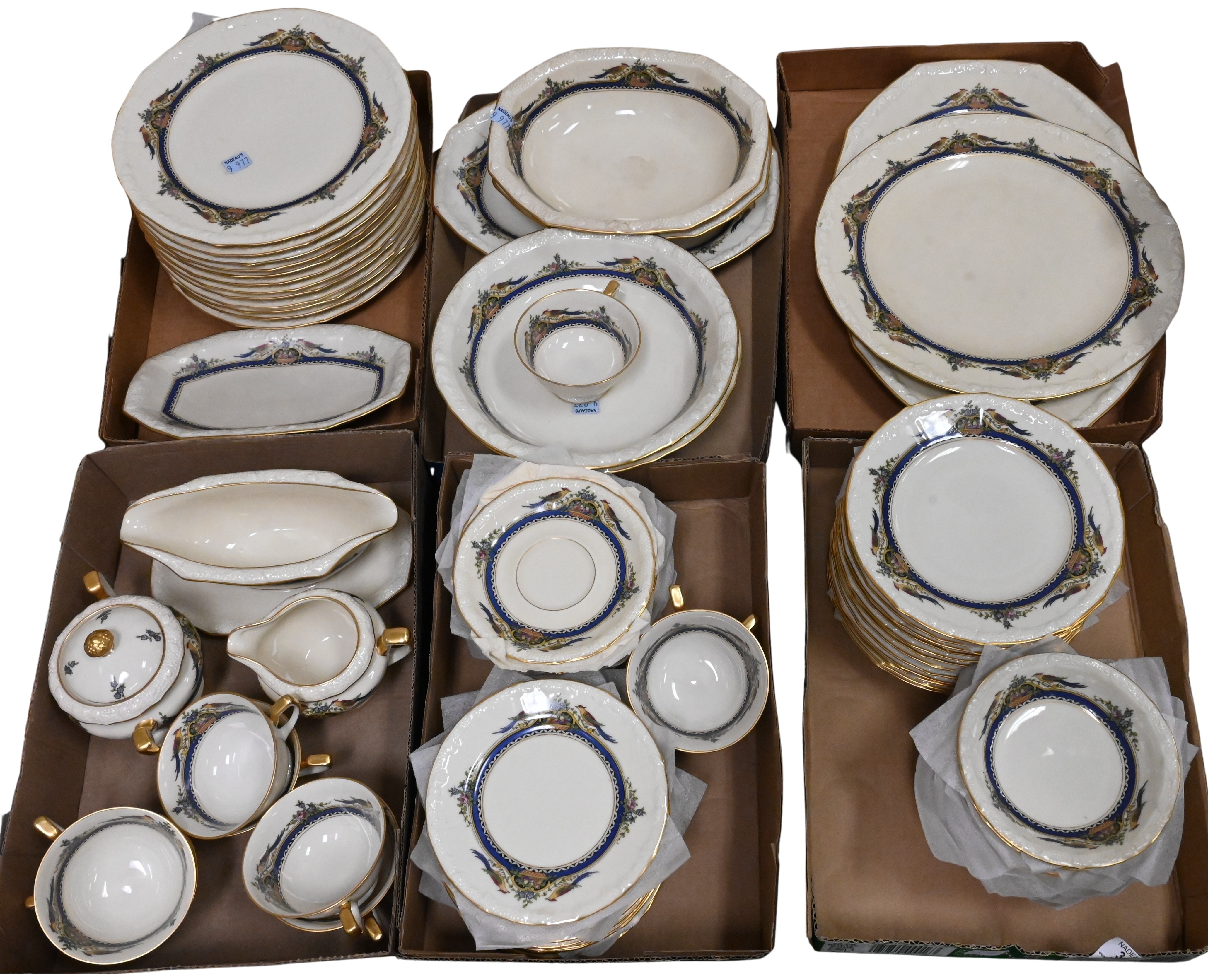 to include one in purple, the other turquoise and navy, both having cartouches featuring urn and flower motif