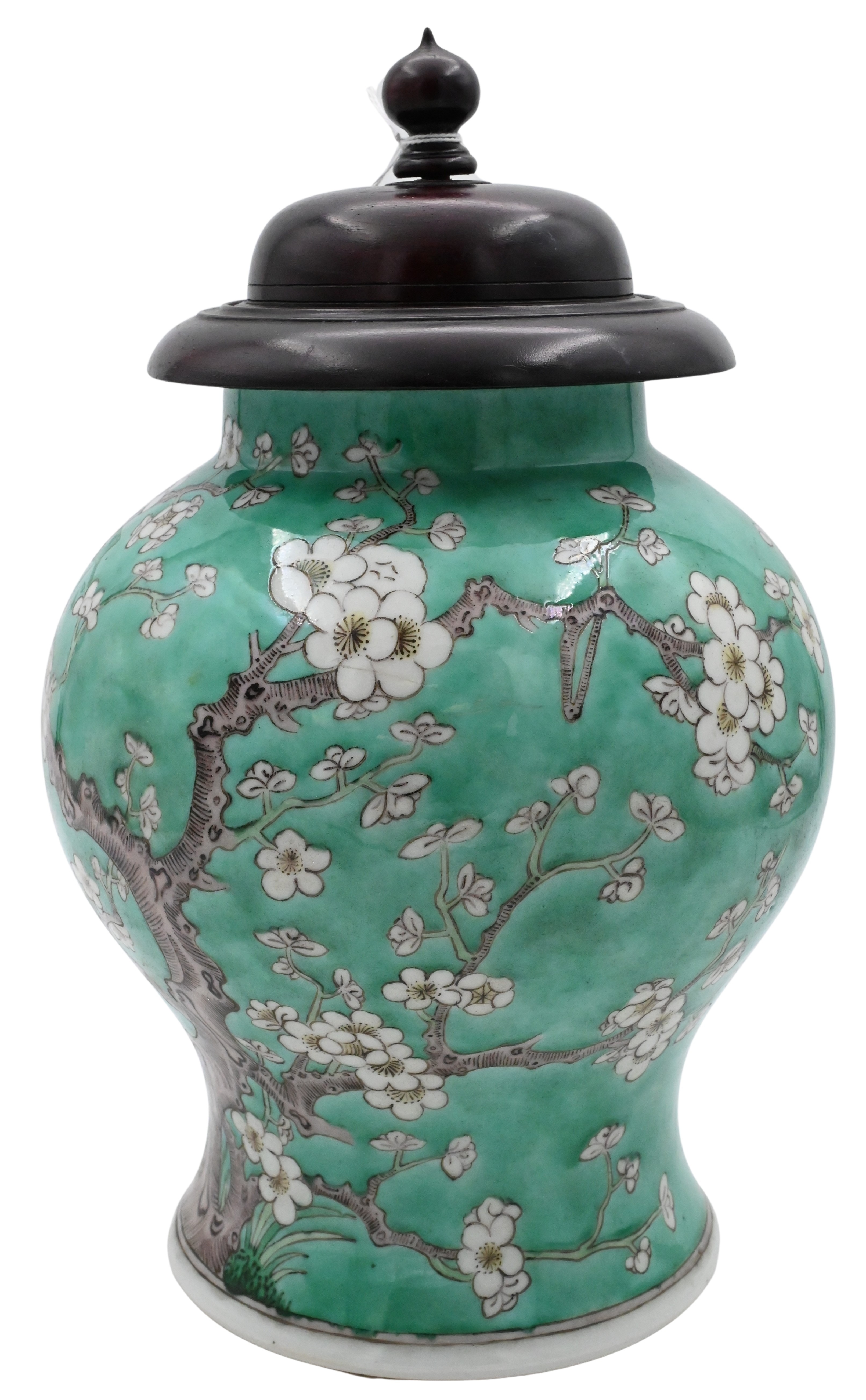 of baluster form having turquoise green ground with cherry blossom and branches motif, 19th century or earlier