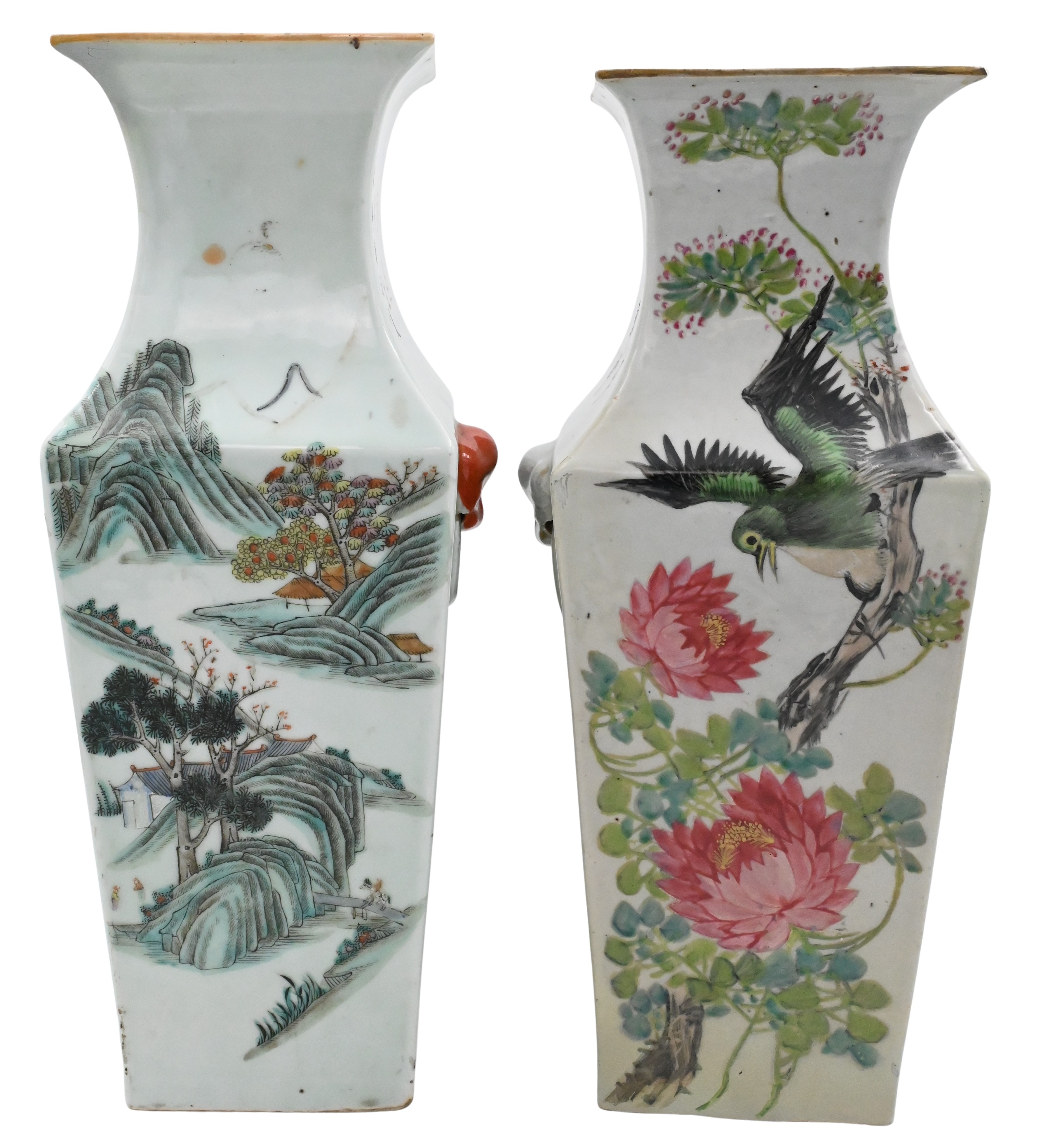 Near Pair of Chinese Squared Famille Rose Ginger Jars