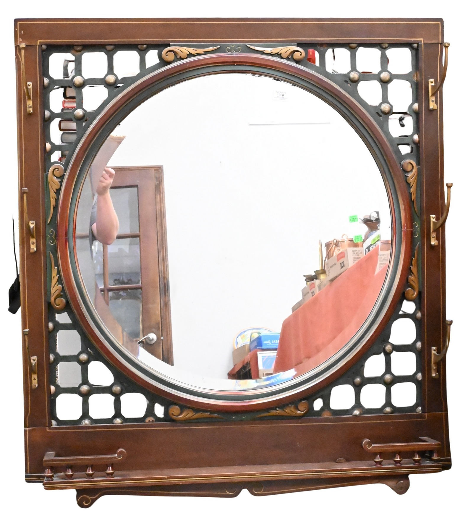 having molded scrolling follicle and flower white painted frame centered by oval beveled glass mirror, label on verso