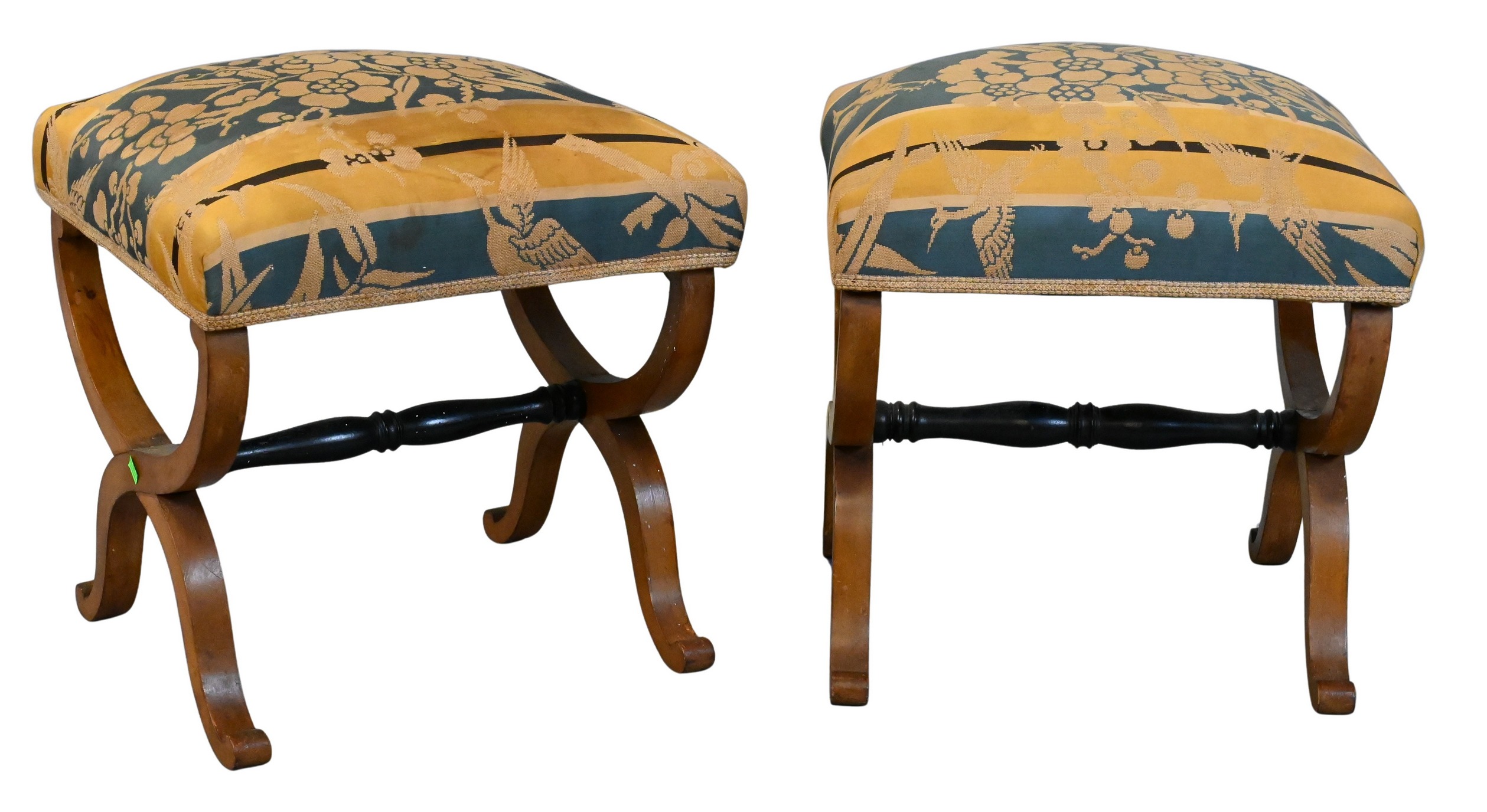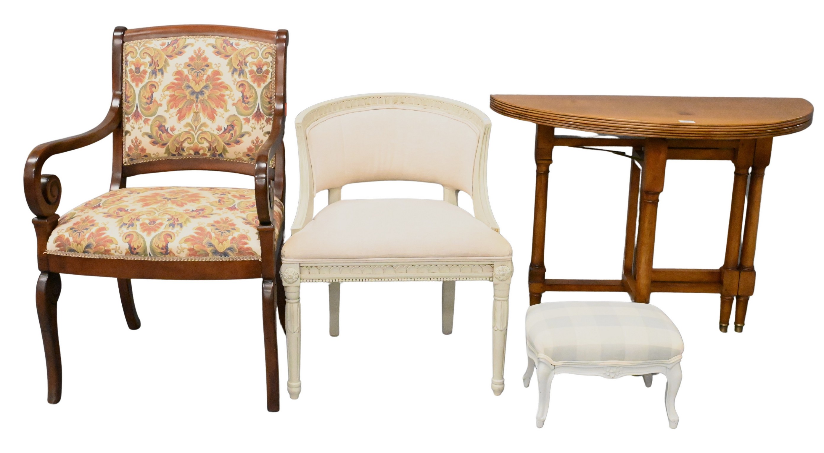 to include two chairs, one footstool, and one mahogany contemporary game table