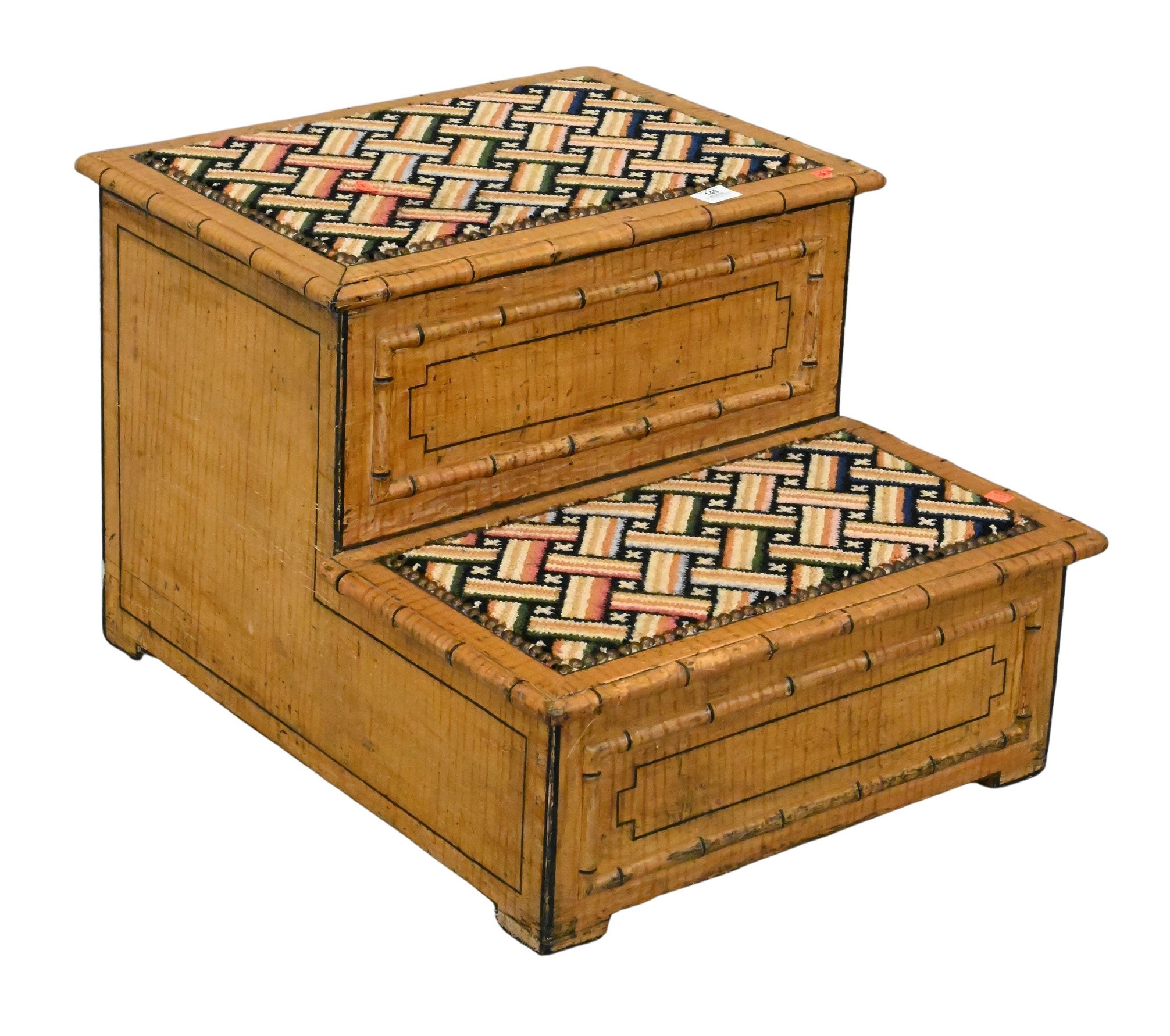 Faux Bamboo Grain Painted and Upholstered Bed Stairs