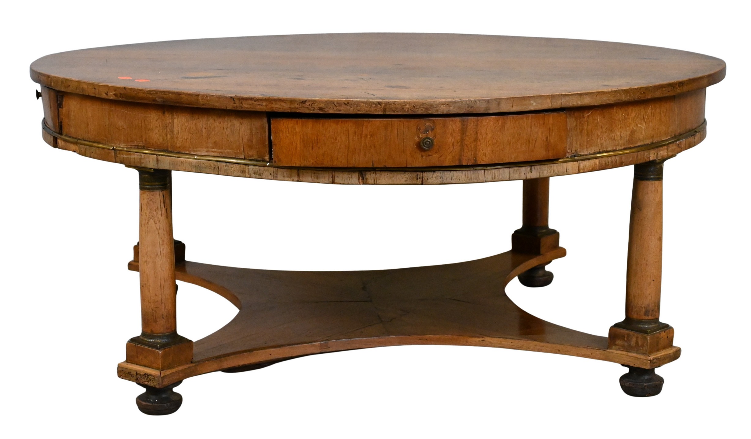 having four drawers set on column base ending in “X” stretcher, made up of old elements