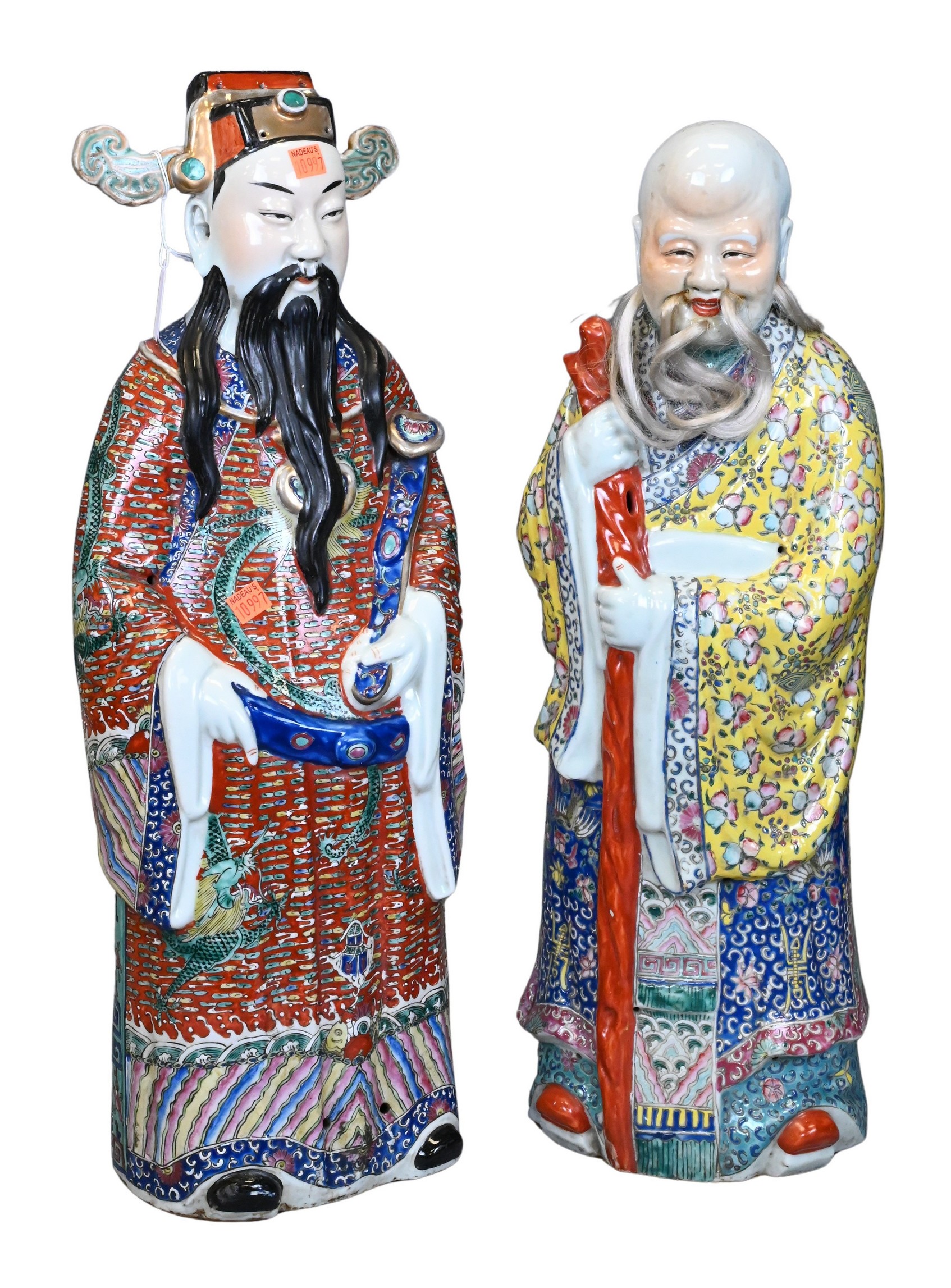 Near Pair of Large Chinese Porcelain Immortal Figures
