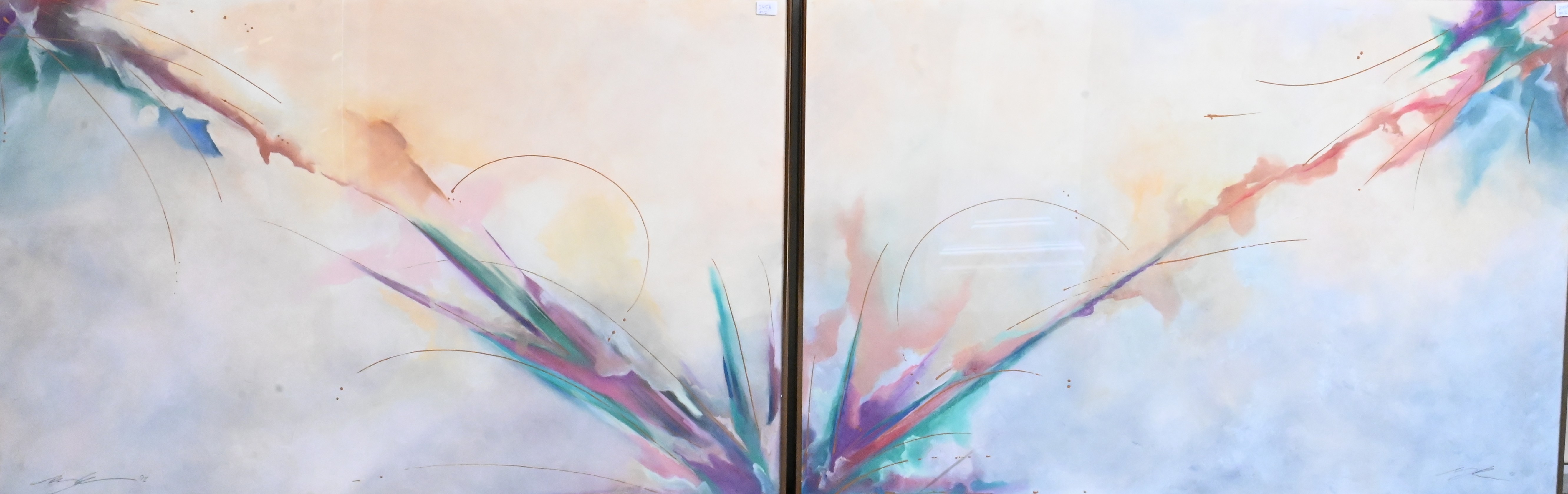 Diptych Composition in Pink, Turquoise and Gold, 1992