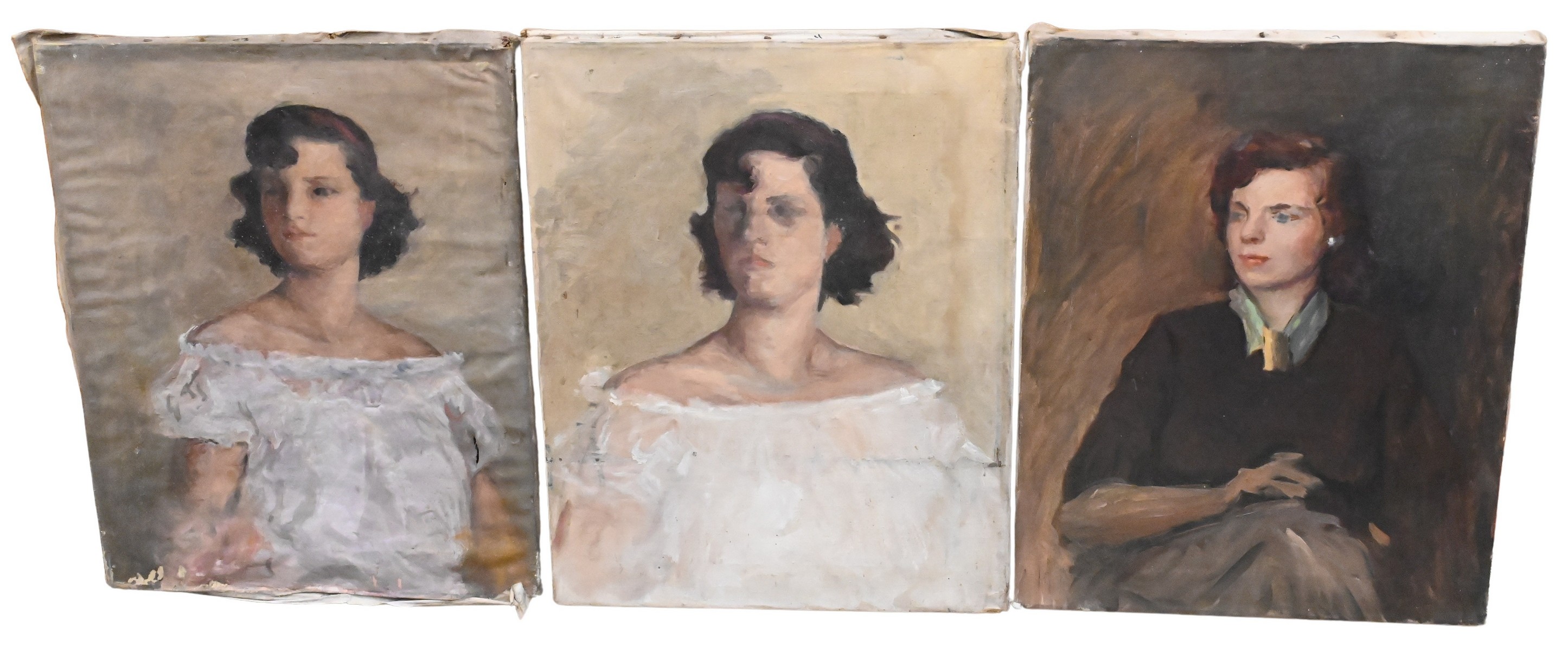 to include two portrait studies of the artist’s daughter Elisabeth, woman in a black hat, woman in a sweater and auburn hair, along with a partial dude woman holding a glass bottle