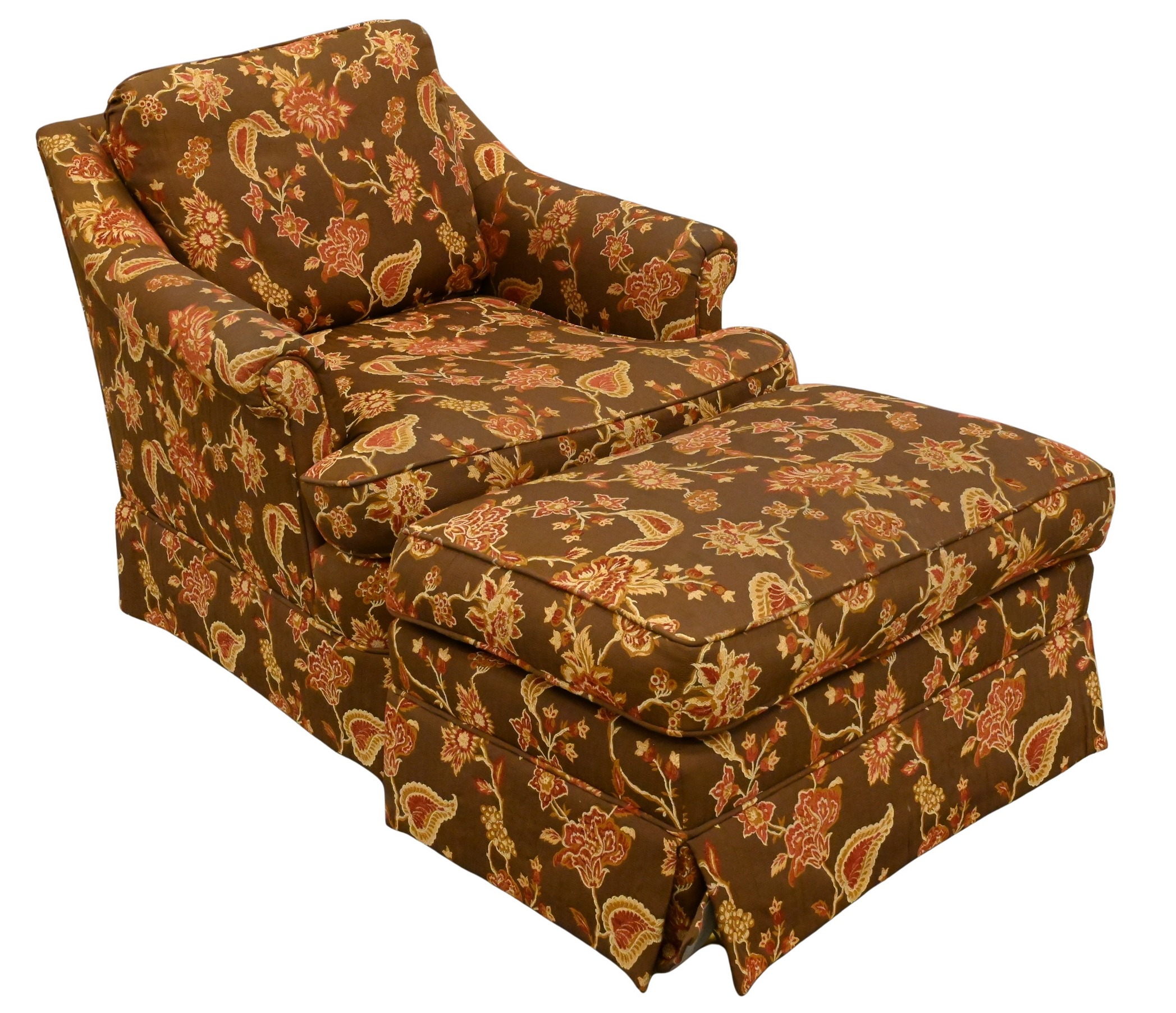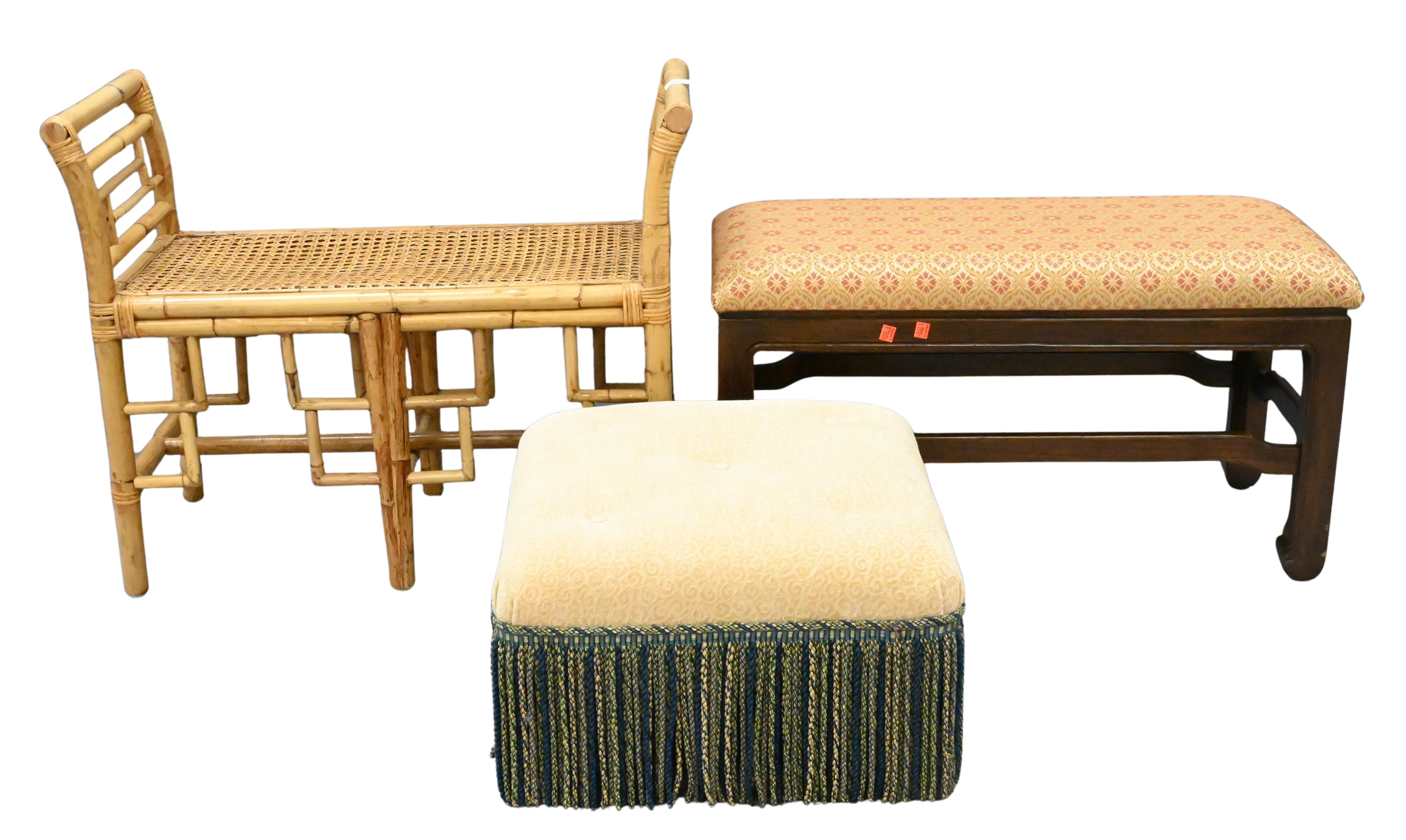 to include Chinese style bench, an ottoman with Brunschwig and Fils upholstery
