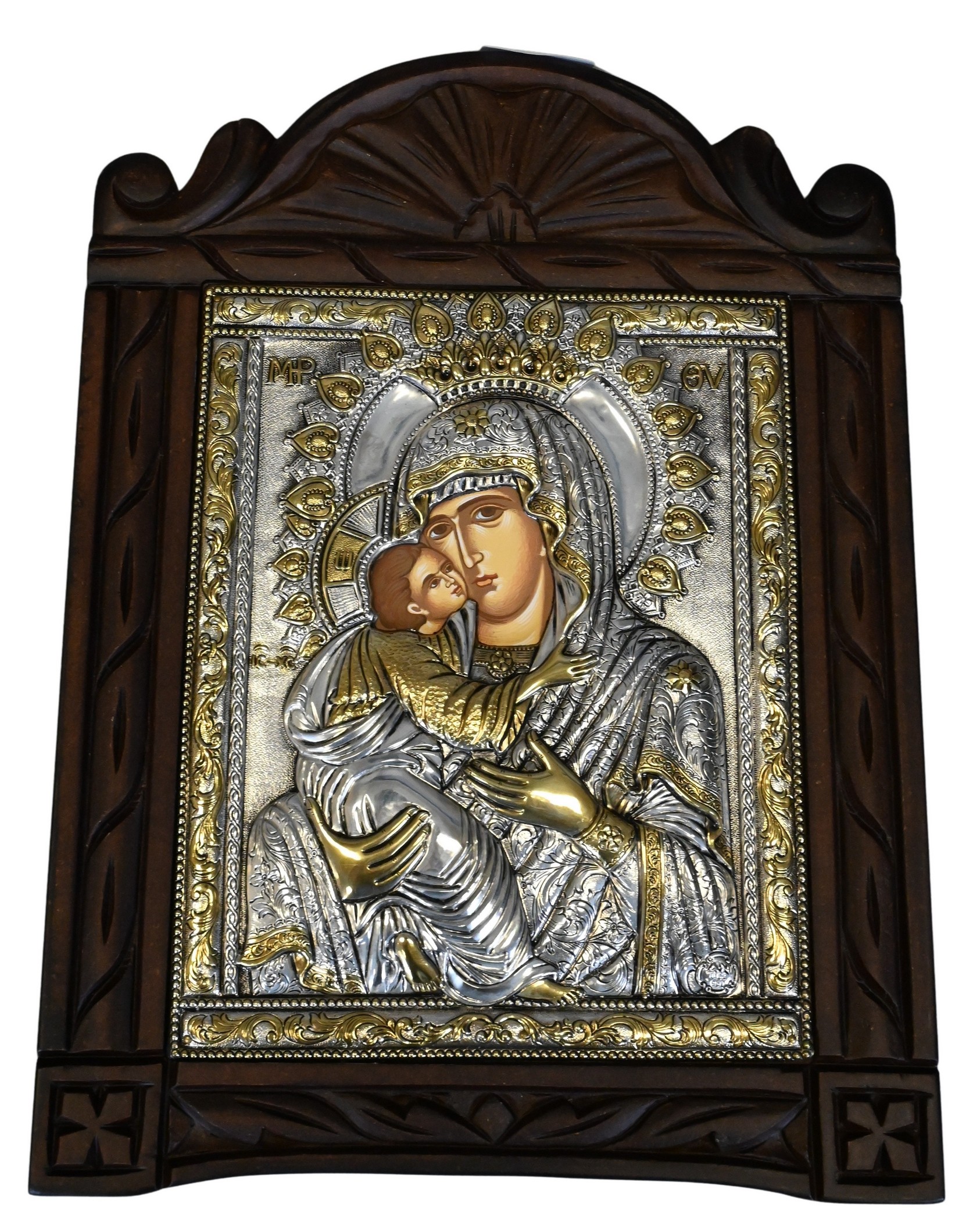 Egg tempera on wood board mounted in brass repousse riza/oklad