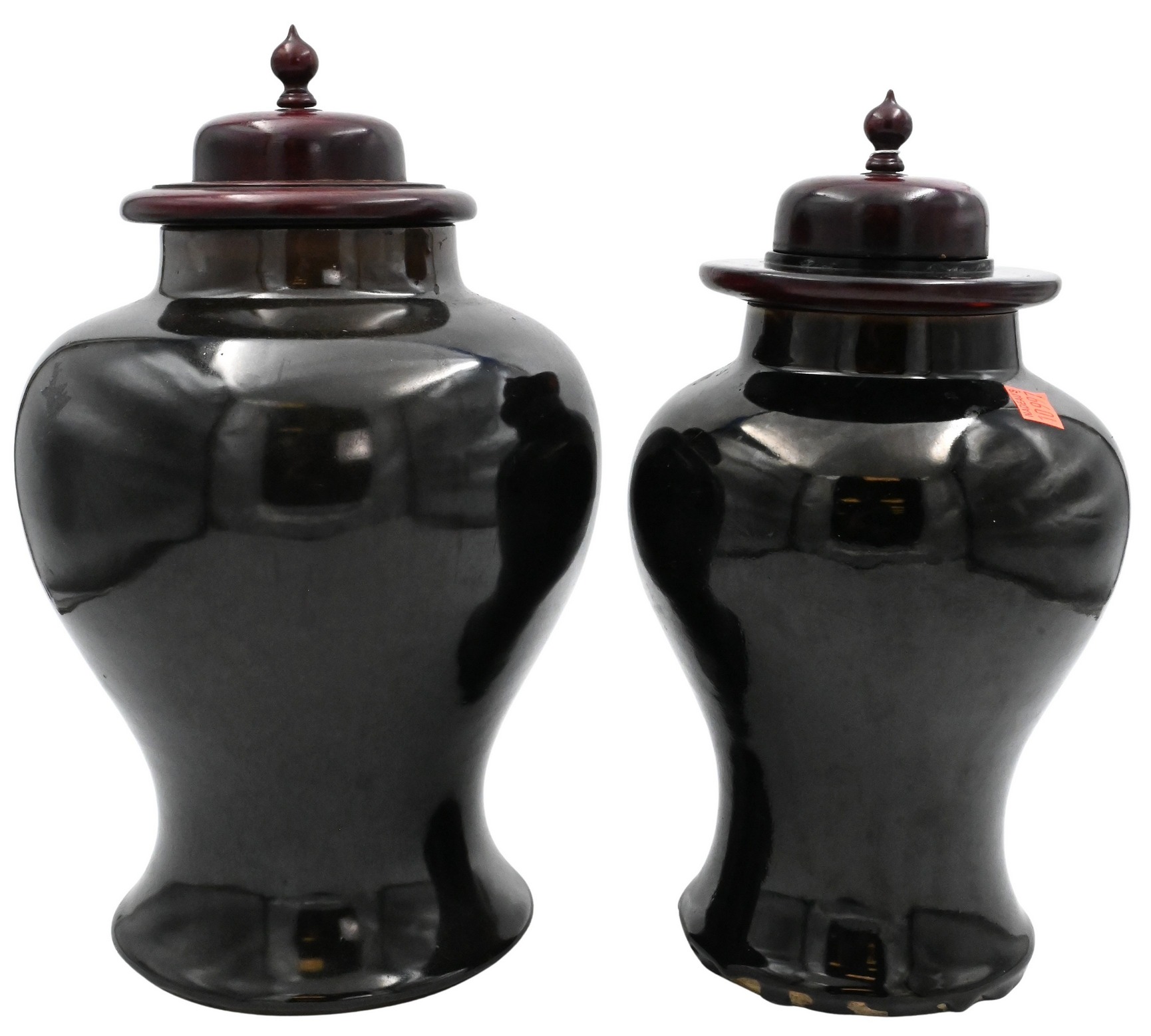 Two Chinese Famille Noire Porcelain Ginger Jars
