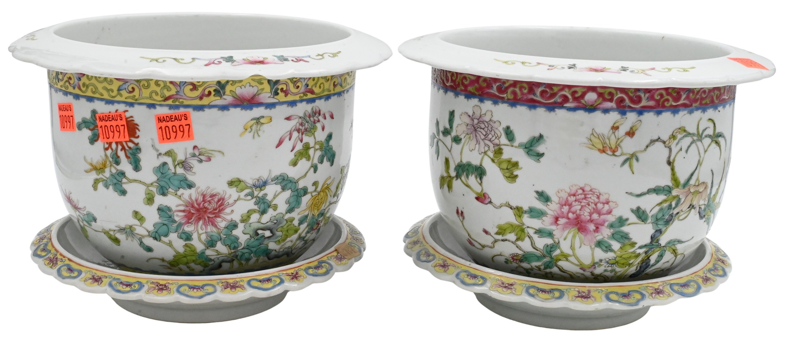 Near Pair of Chinese Famille Rose Porcelain Jardinieres