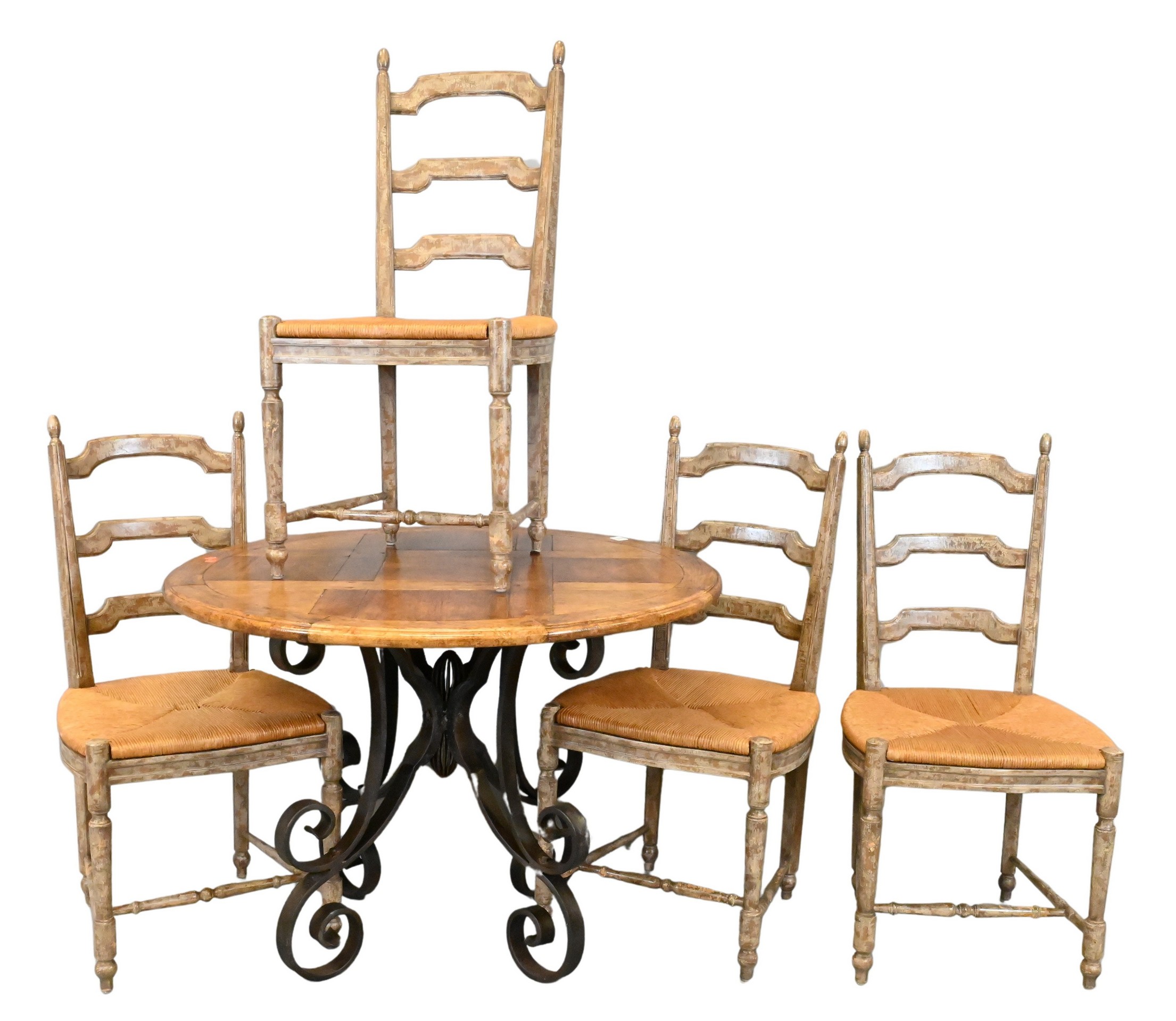 to include a kitchen table with iron base along with four chairs with rush seats by Collection Reproductions