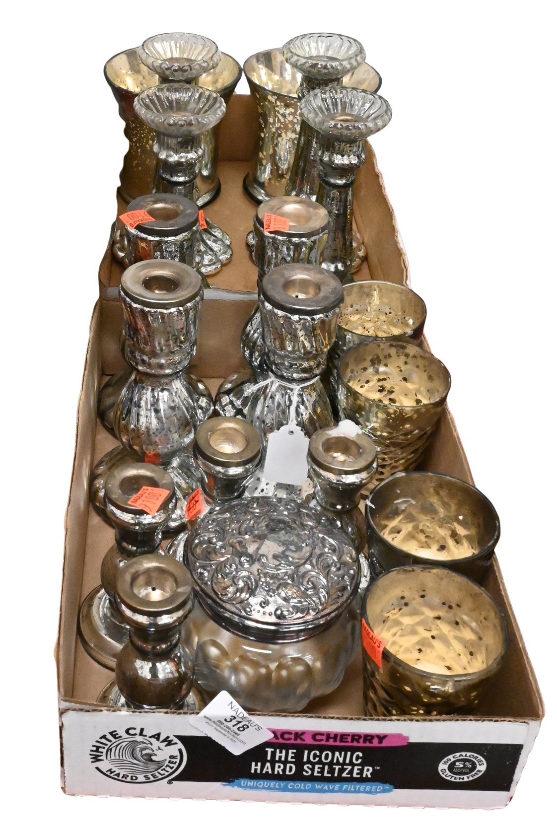 to include votive candles, glass jar with mercury lid, along with reeded baluster shaped lamp, height 17 inches