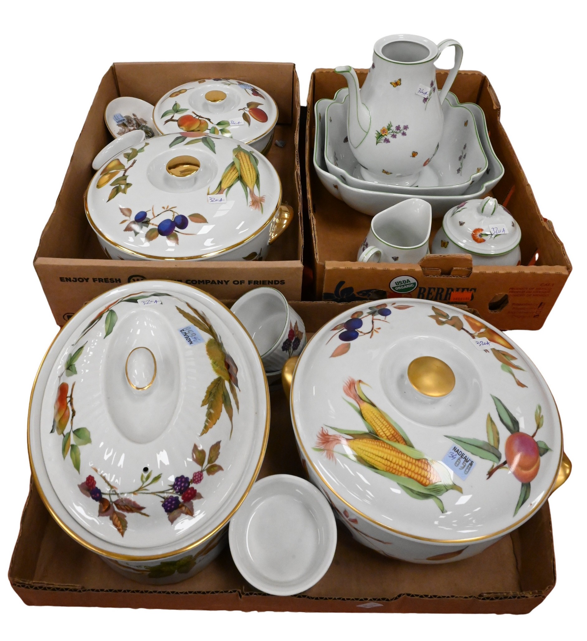 to include Royal Worcester “Evesham” casserole dishes, ramekins, pie dish, “Tiffany Garden” group with tea pot (without lid), cream and sugar bowls, etcetera