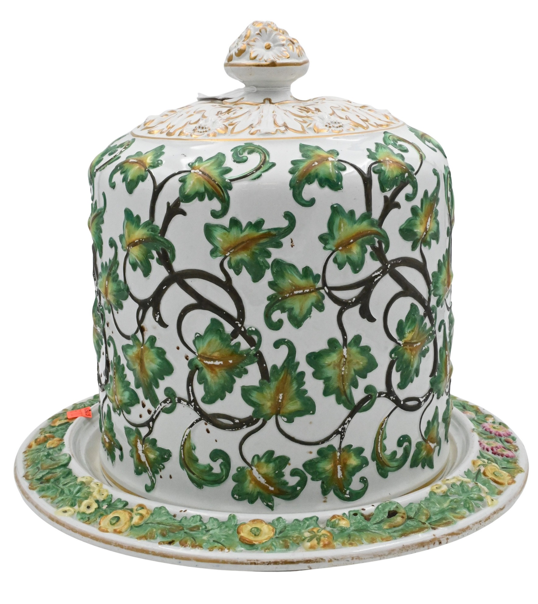featuring putti figures flanking a female bust, surrounded by openwork griffins surmounted by urn form finial, all over six scrolled feet