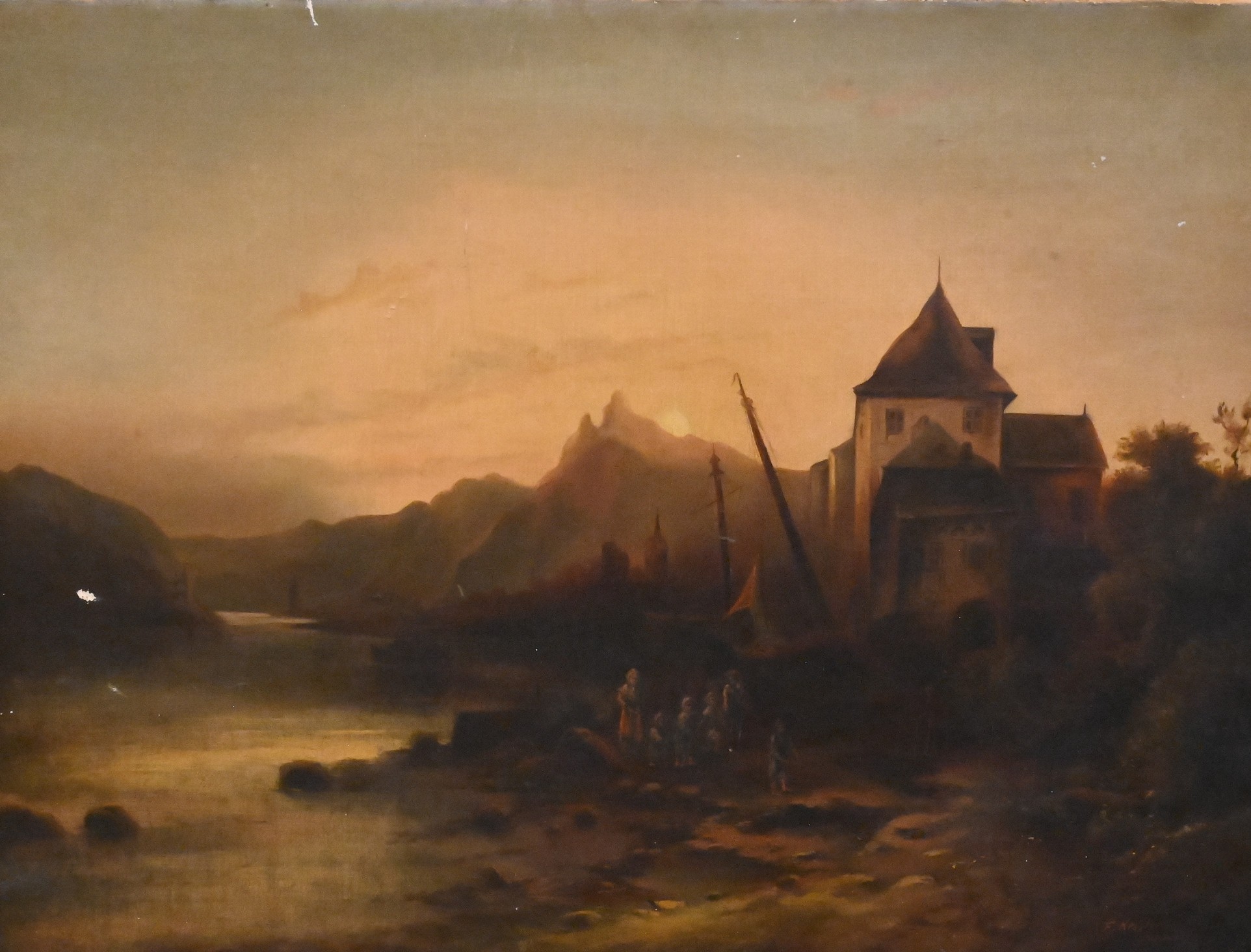 Riverside Landscape with Women and Children Waiting by the Harbor