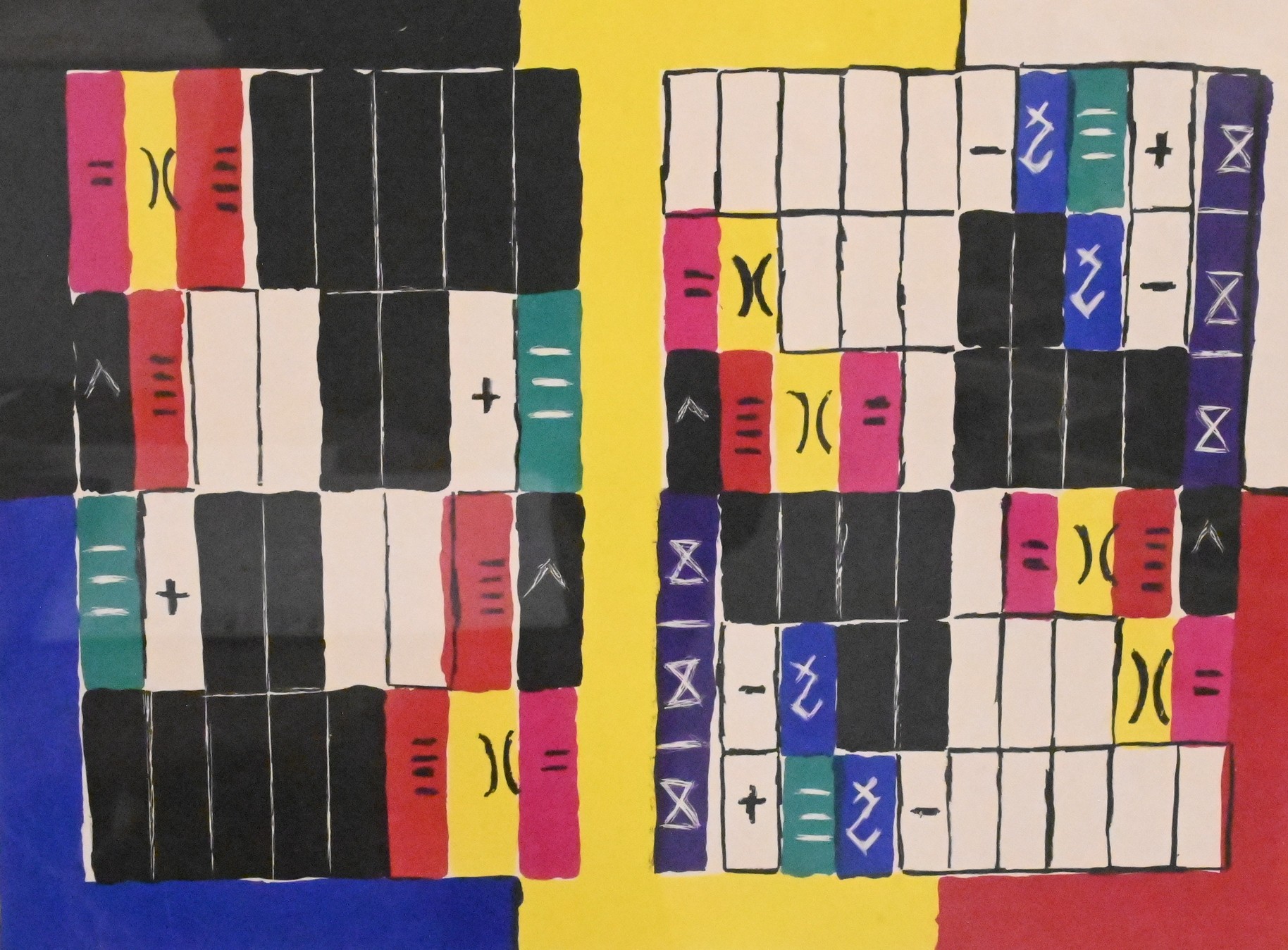 Signed and dated lower right Alfred Jensen 1960, embossed stamp lower left