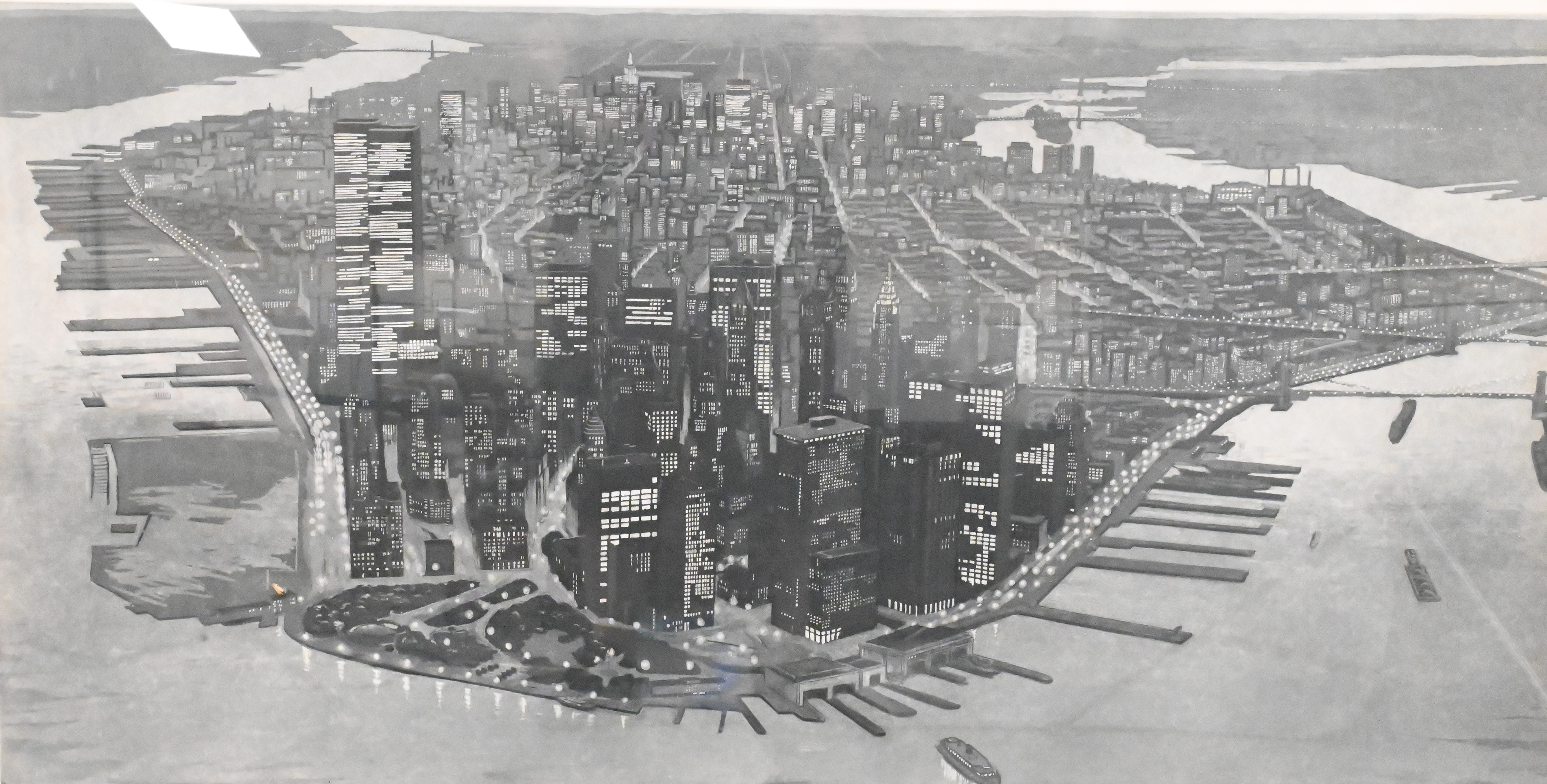 along with three small construction pieces of sliding cityscapes by Jay Palefsky (American 1946-2021)