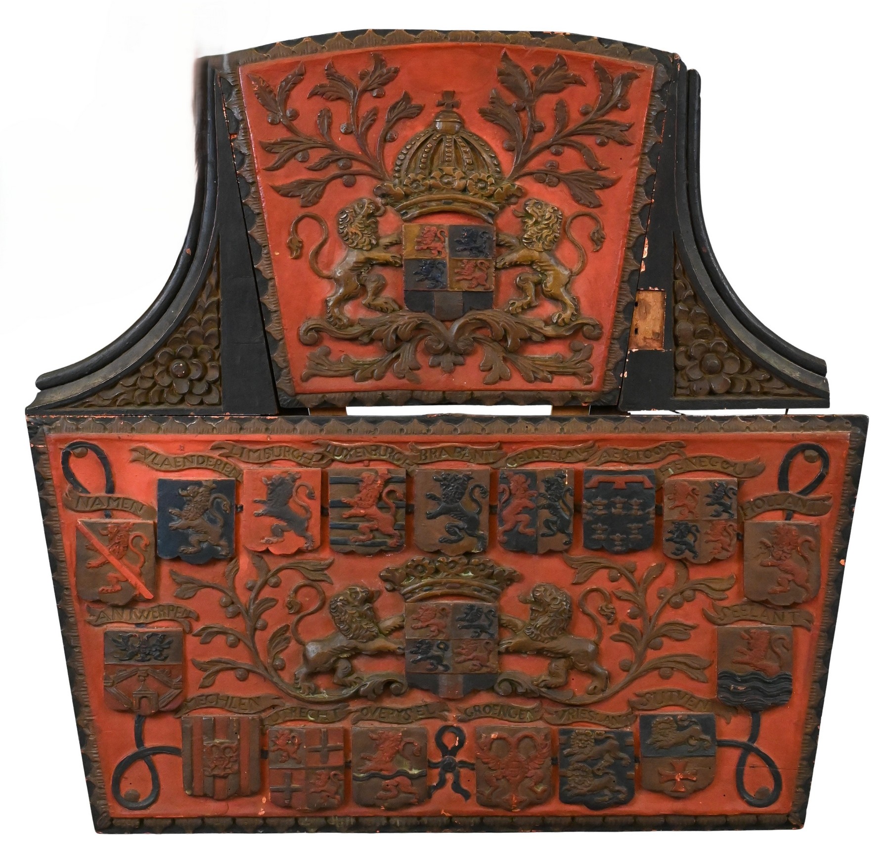 Large Carved and Polychrome Heraldic Shield of the Low Countries