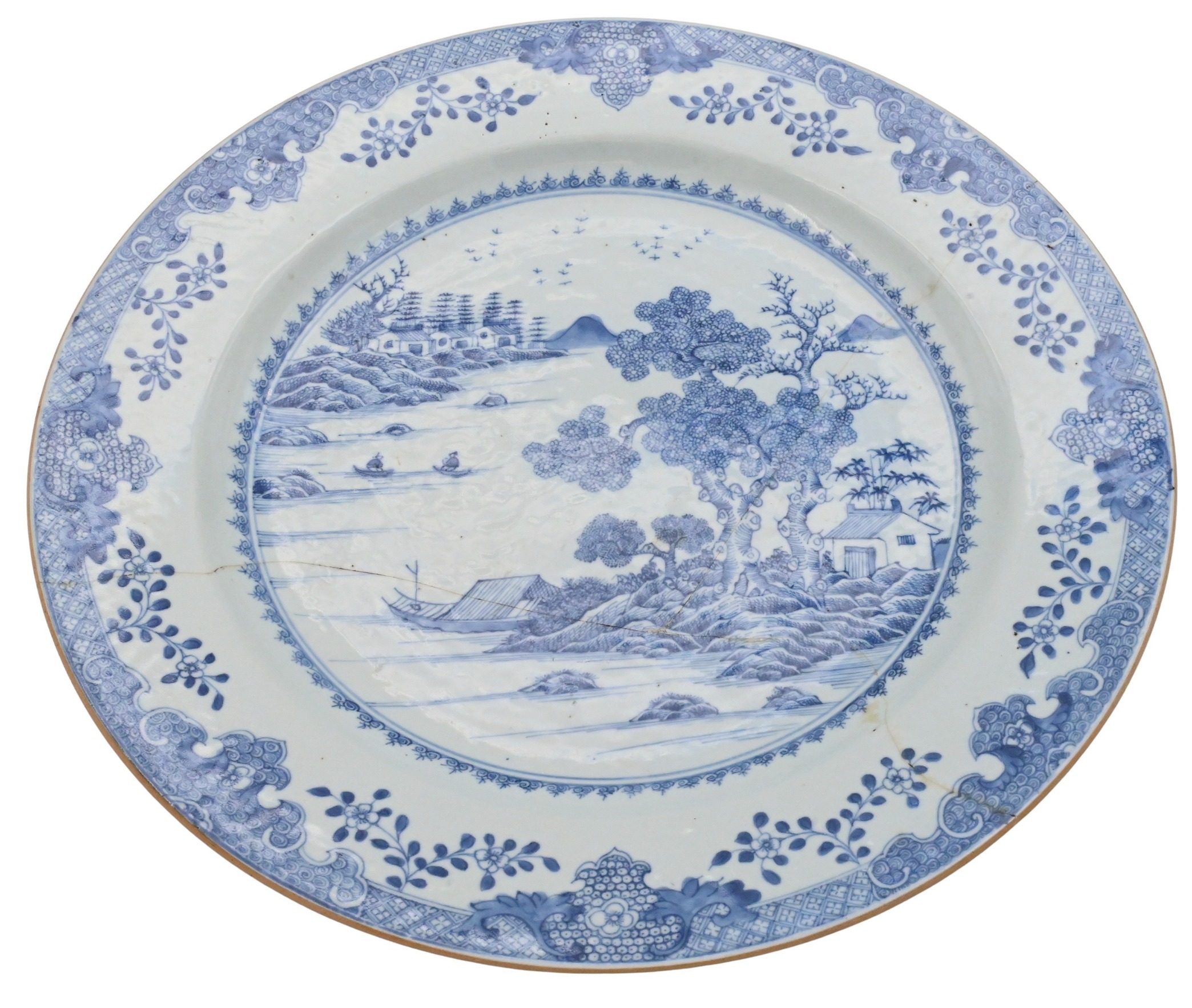 decorated to show a lakeside scene, cracked and repaired, 18th century