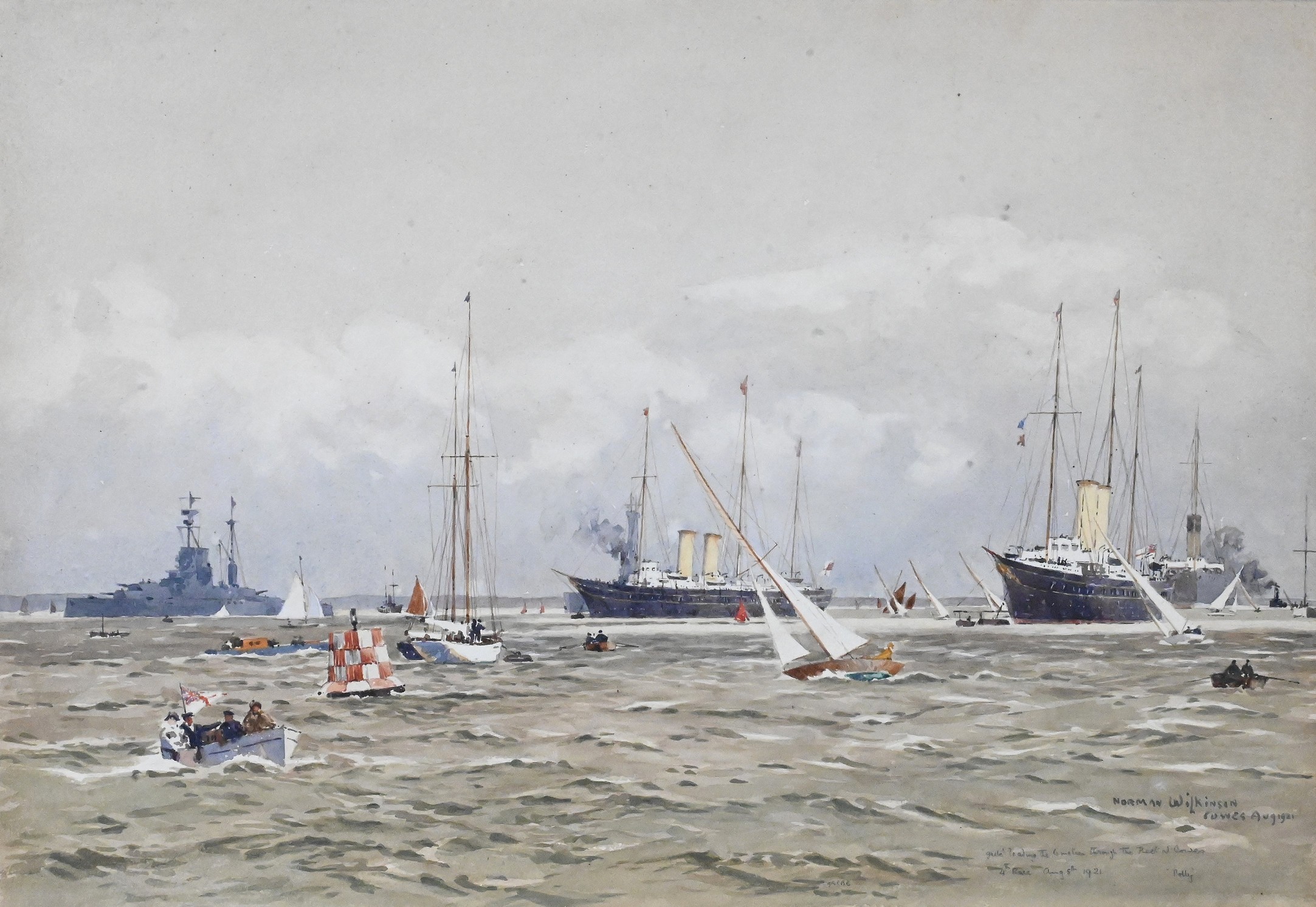 ‘Grebe’ Leading the 6-Metres Through the Fleet at Cowes, 4th Race, August 5th 1921 (‘Polly’)