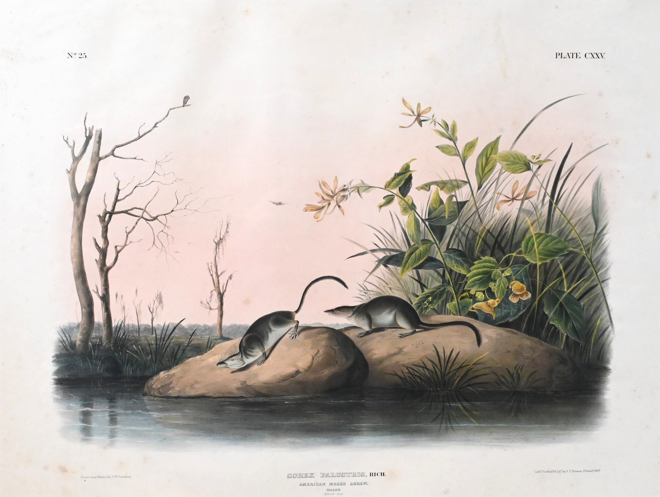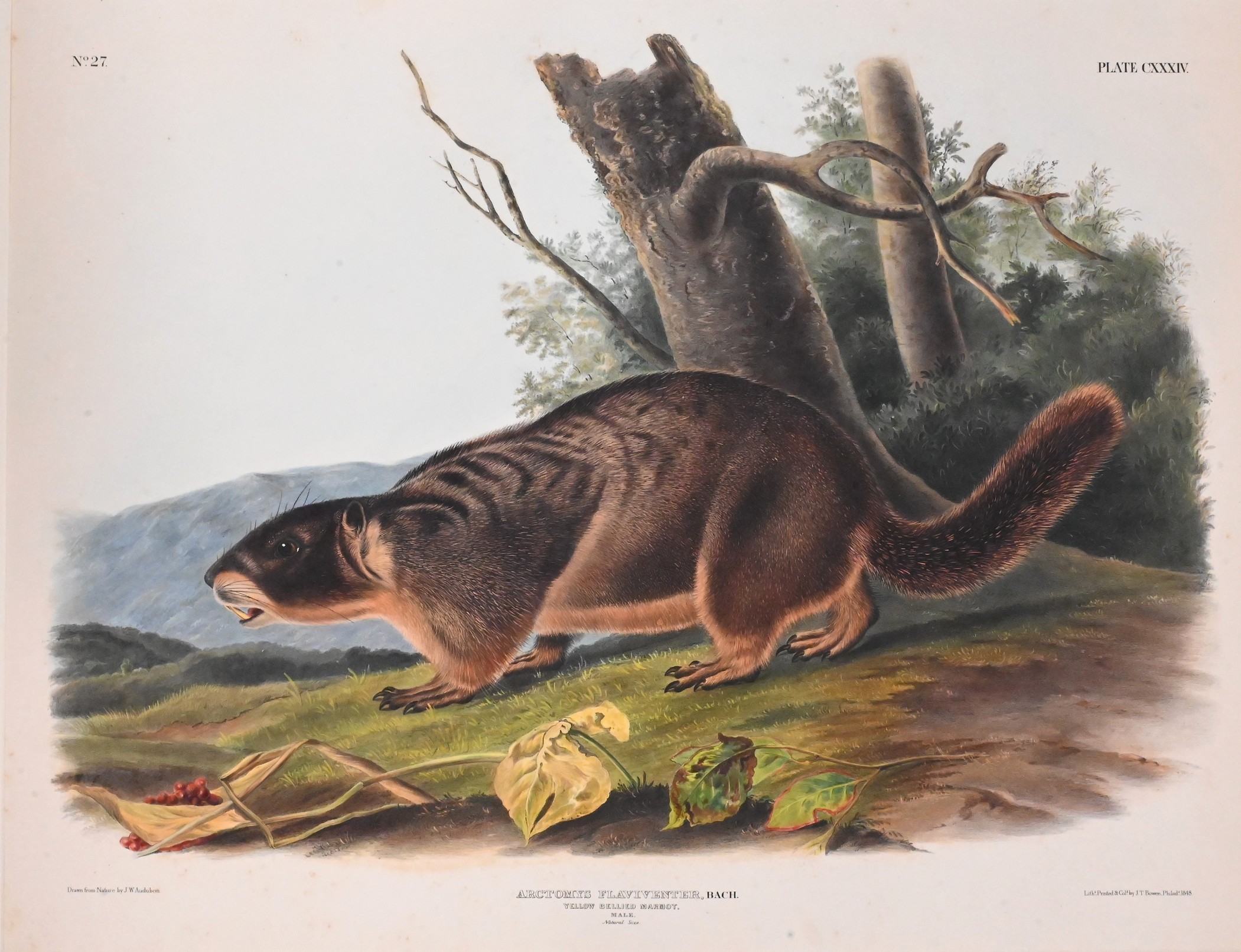 Hand-colored lithograph by John T. Bowen (American 1801-1865) plate CXXVI from The Viviparous Quadrupeds of North America, Imperial Bowen Edition.