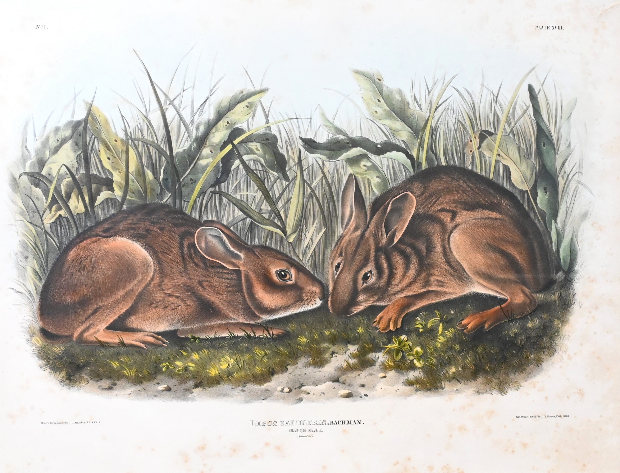 Hand-colored lithograph by John T. Bowen (American 1801-1865) plate XVIII from The Viviparous Quadrupeds of North America, Imperial Bowen Edition.