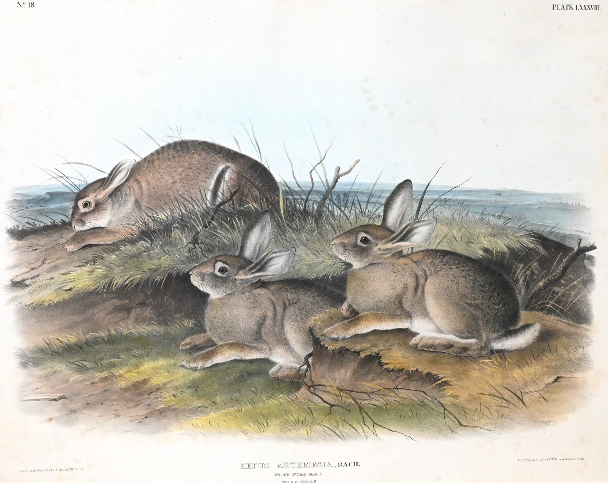 Hand-colored lithograph by John T. Bowen (American 1801-1865) plate LXXXVIII from The Viviparous Quadrupeds of North America, Imperial Bowen Edition.