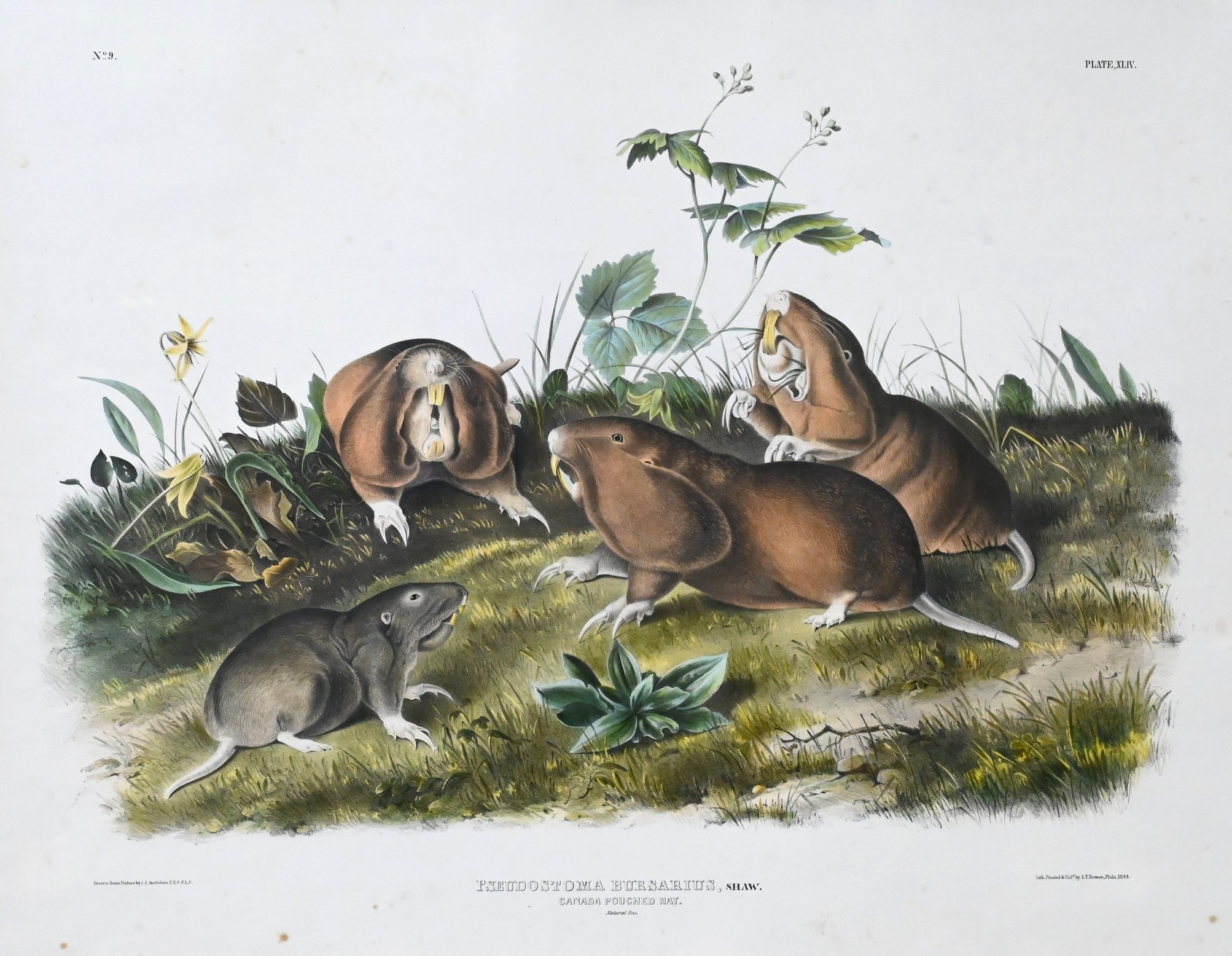 Hand-colored lithograph by John T. Bowen (American 1801-1865) plate XLIV from The Viviparous Quadrupeds of North America, Imperial Bowen Edition.