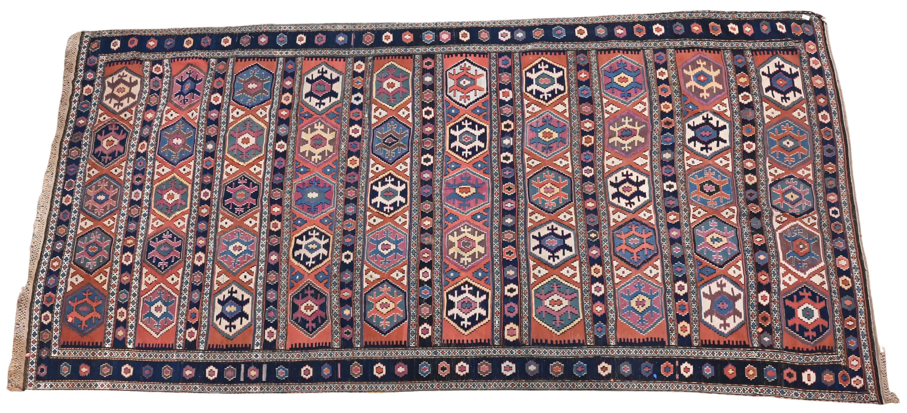 Condition: Wear and fading consistent with age; areas of low pile and small losses to fringe.