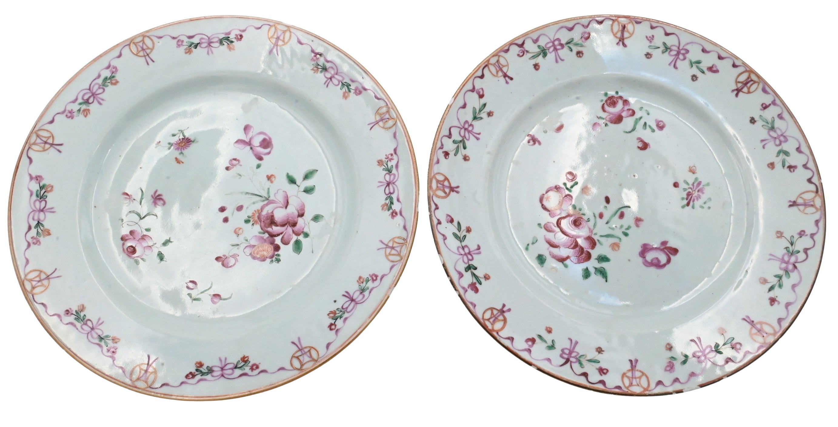 modestly decorated with pink flowers, some chips and cracks, 18th century