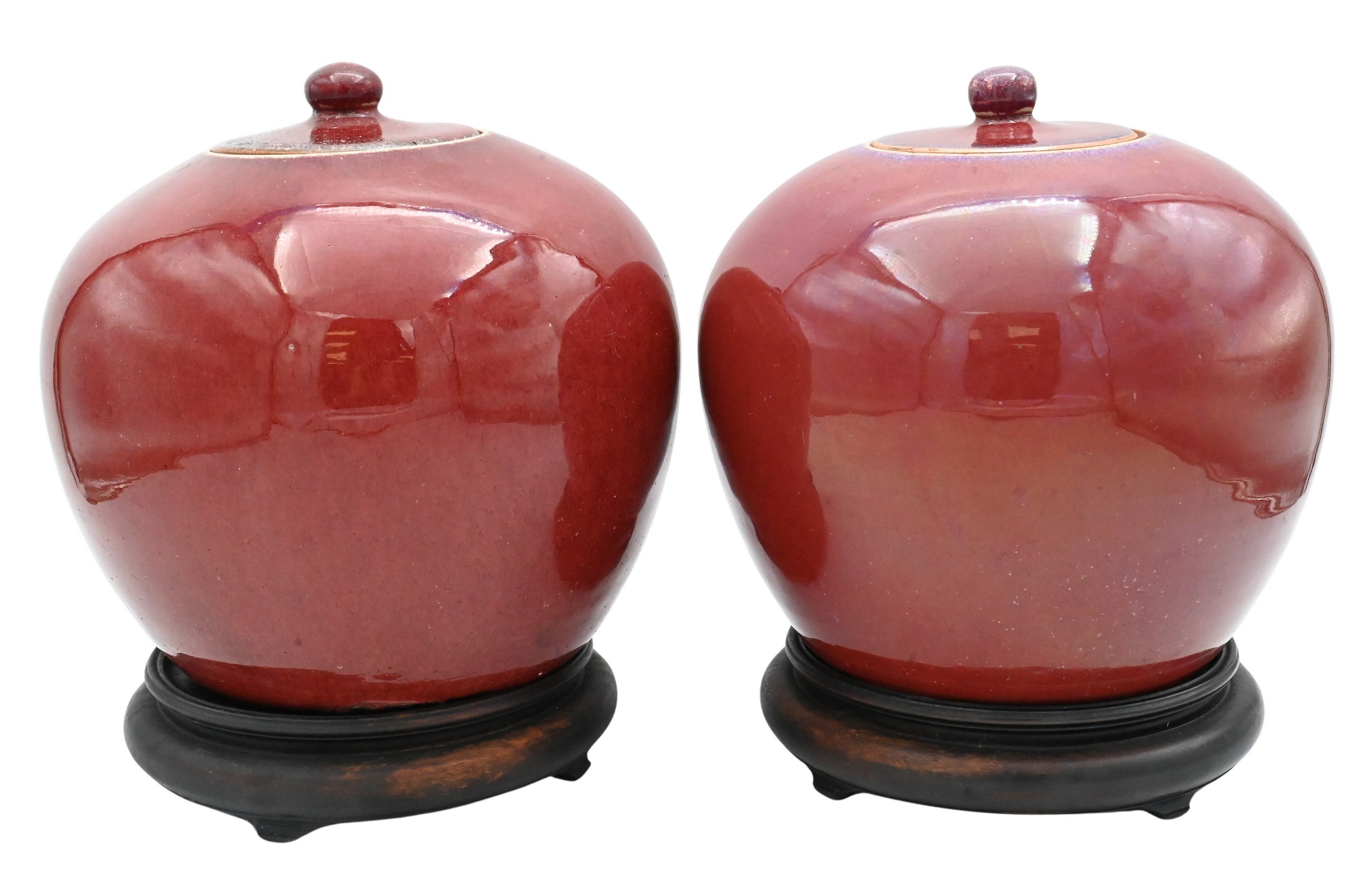 Pair of Chinese Oxblood (Langyao) Covered Melon Jars