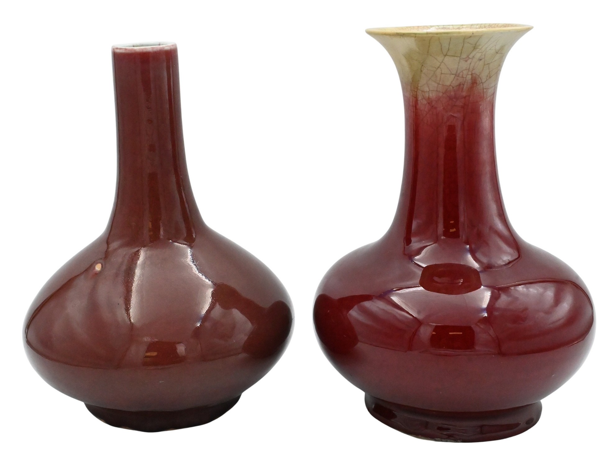 Two Chinese Monochrome Red Bottle Vases (Tianqiuping)