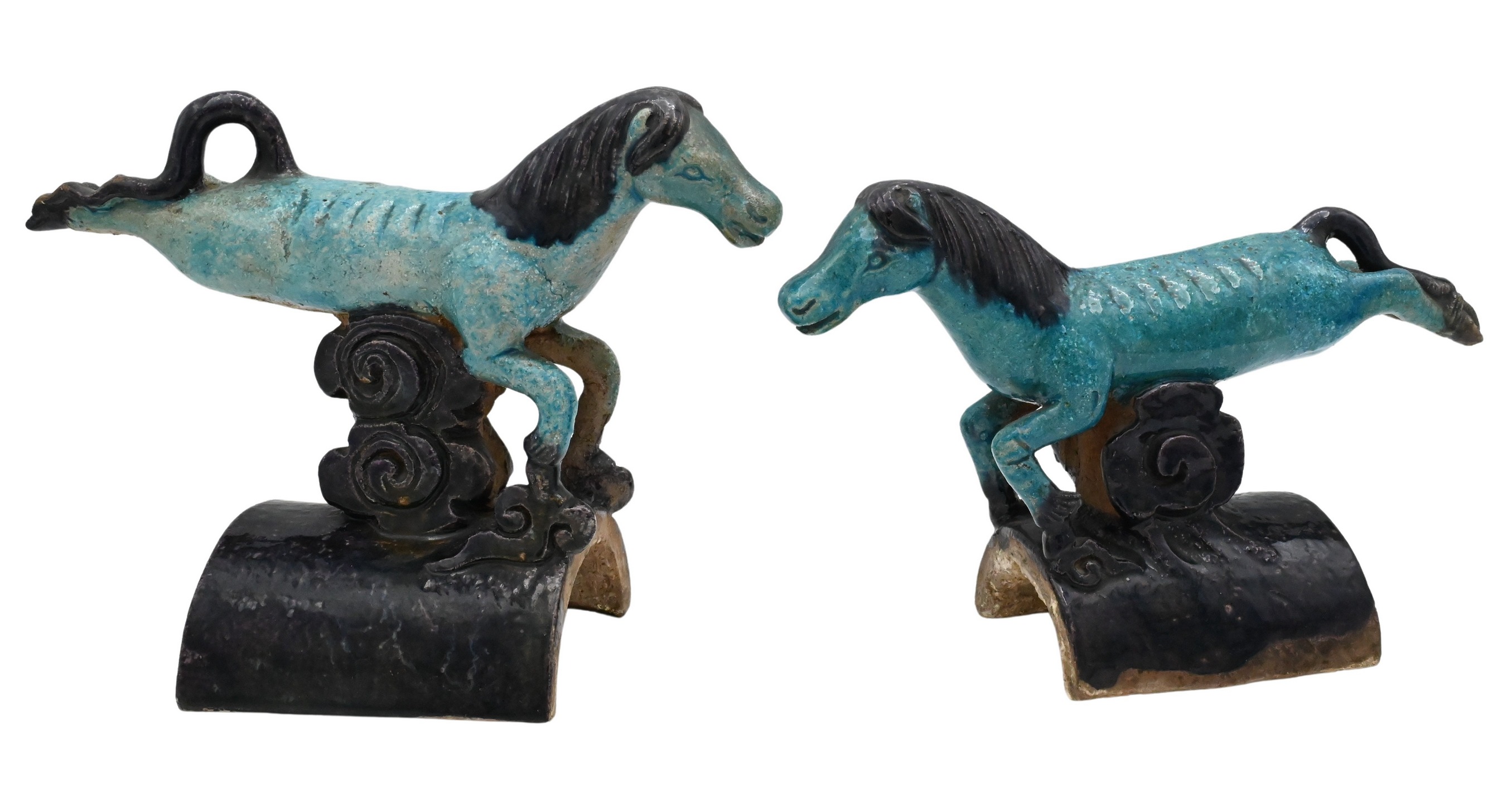 Pair of Chinese Stoneware Flying Horse Roof Tiles