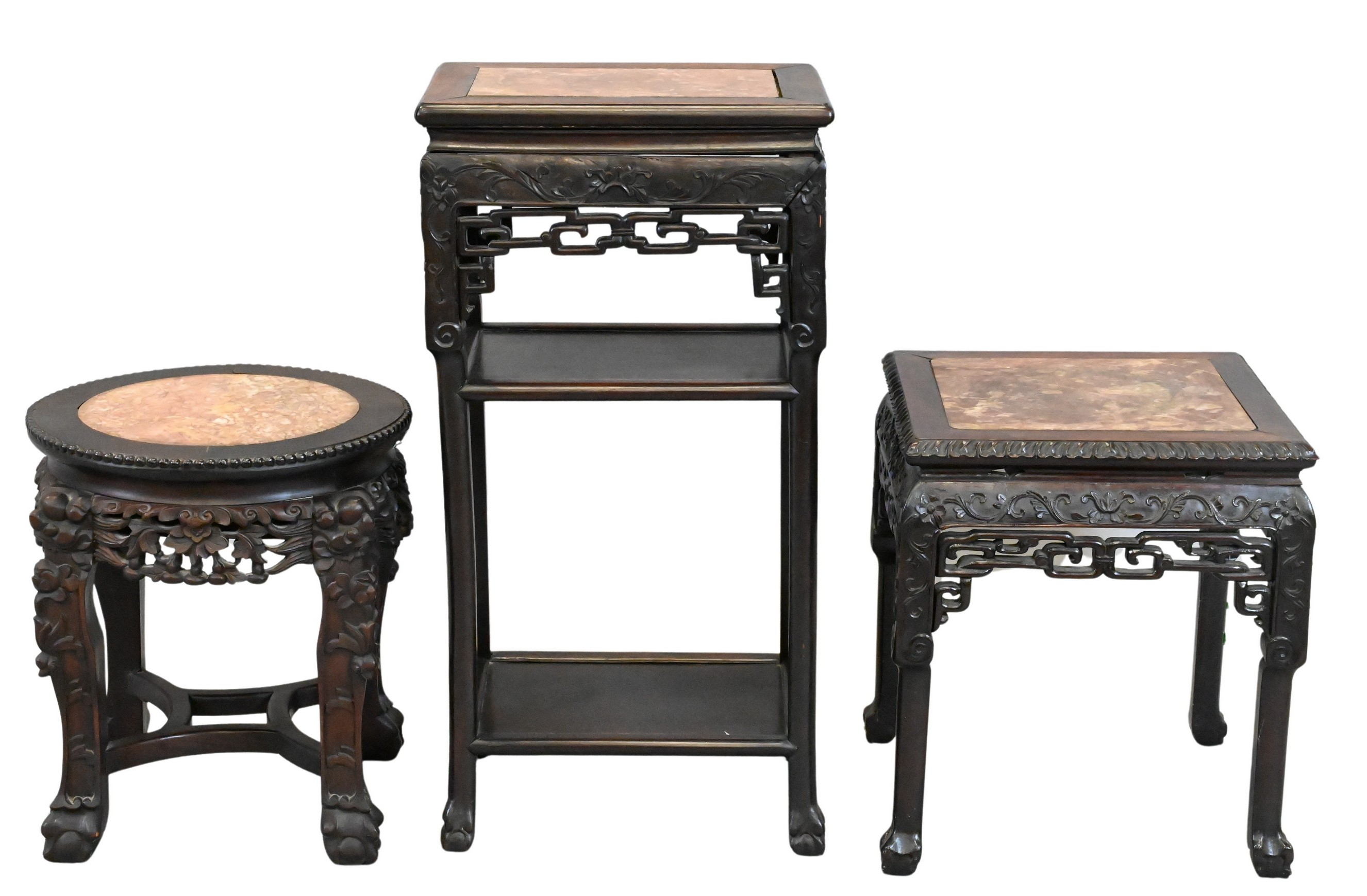 Three Chinese Hardwood and Marble Stands, Late 19th / Early 20th Century