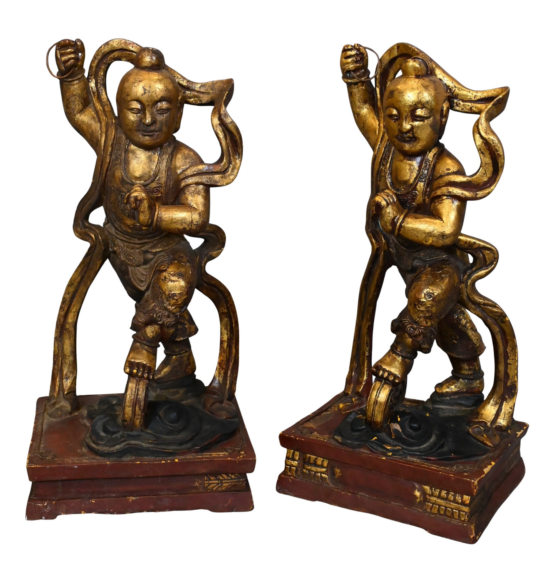 Pair of Chinese Giltwood Figures, Late Qing / Republic Period
