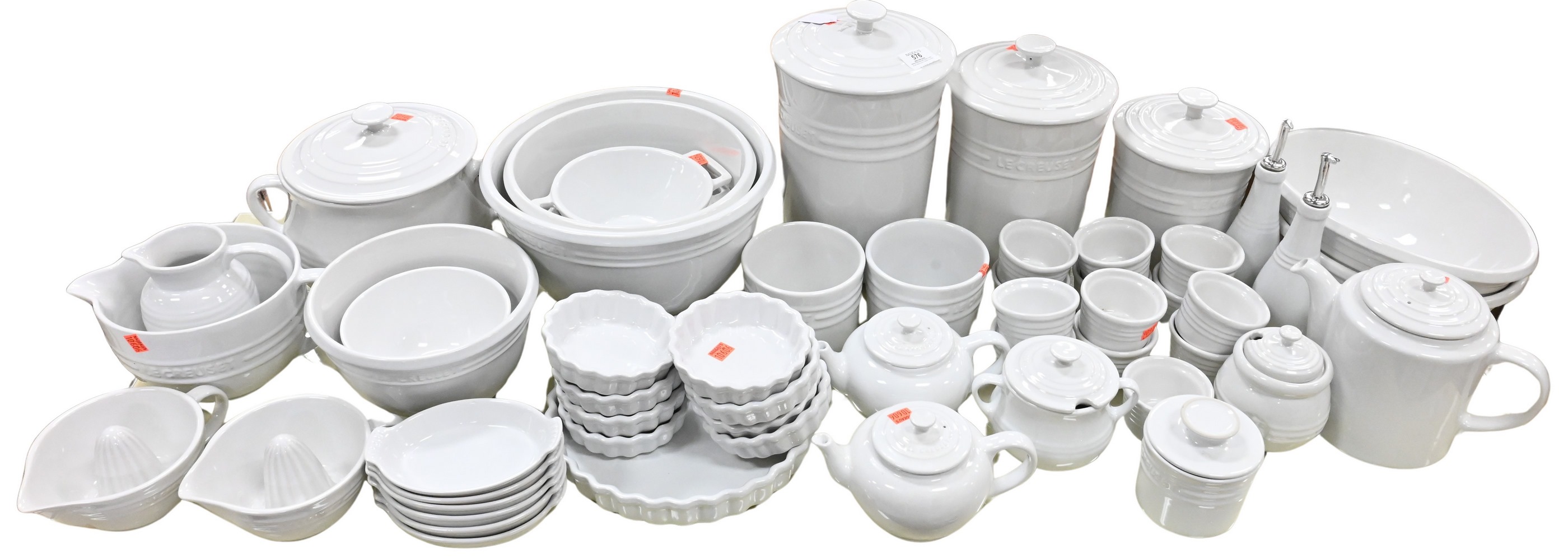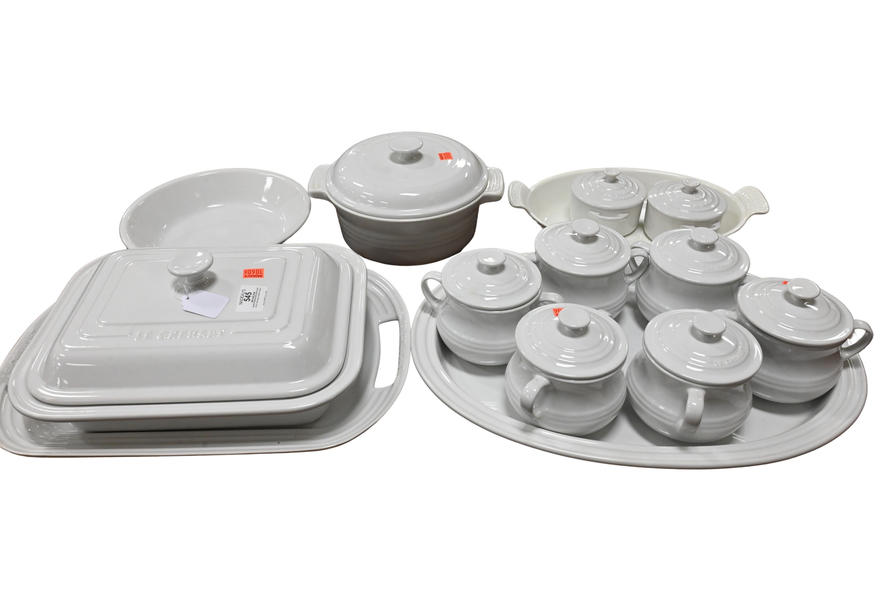 54 Piece Grouping of Le Creuset White Ceramic Cookware