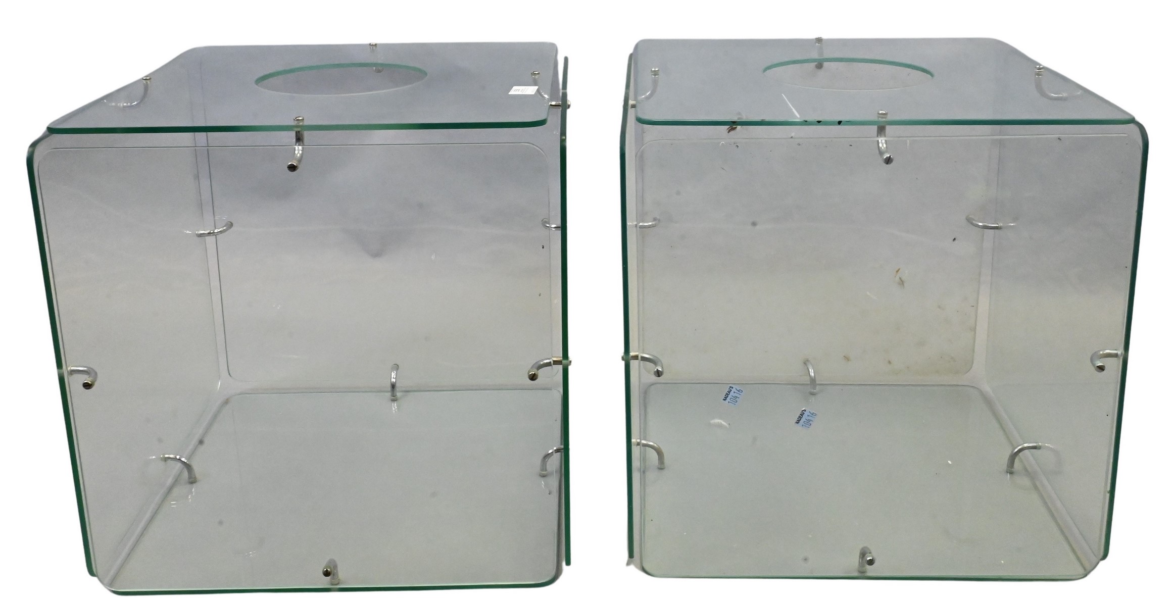 Two Mid-Century Modern Lacquered Glass Top End Tables