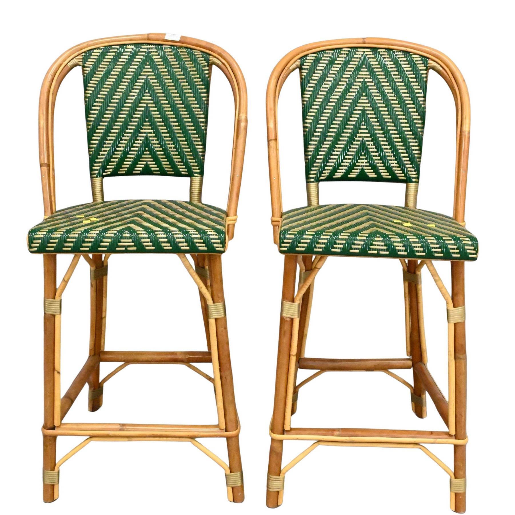 black enamel tripod base having green, red, and yellow lacquered wood finials, France circa 1950