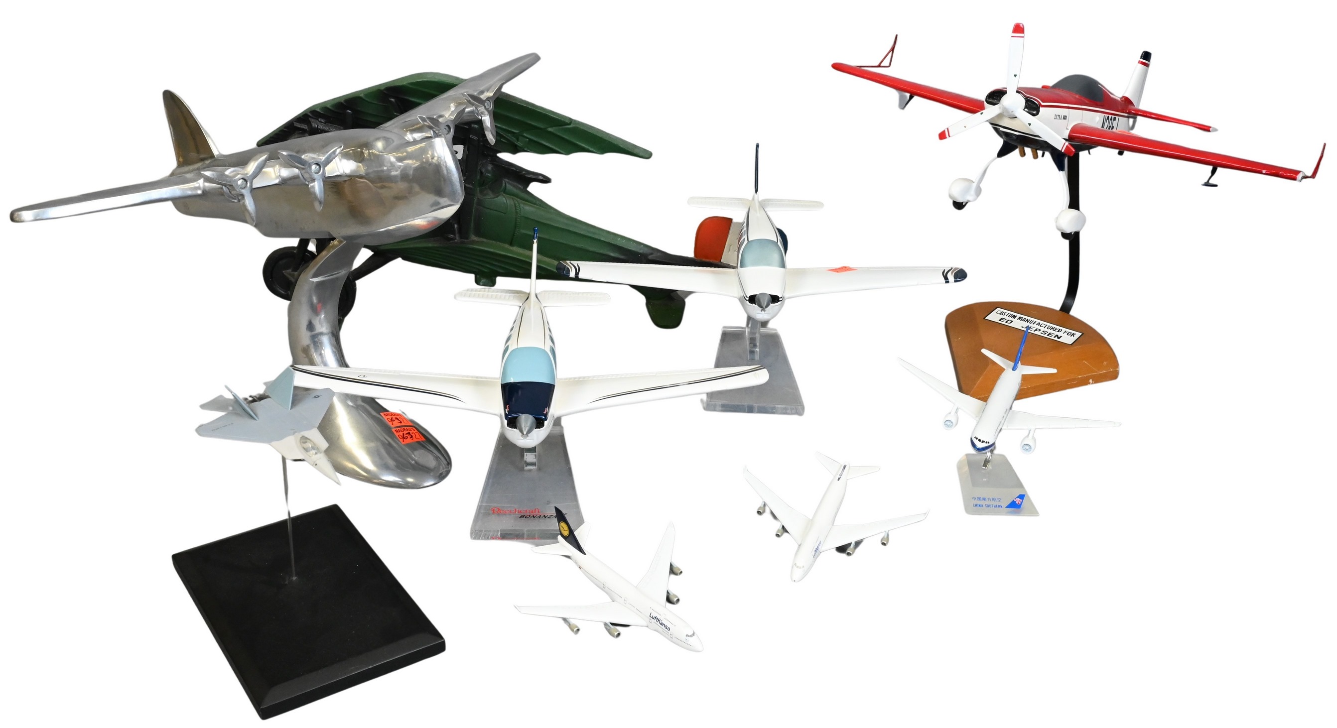 to include cast iron WWII Sexton fighter plane, Art Deco chrome seaplane desktop model, Extra 300s, Beechcraft Bonanza G36, Beechcraft Bonanza A36, China Southern B-2051, two Lufthansa, Lockheed Boeing