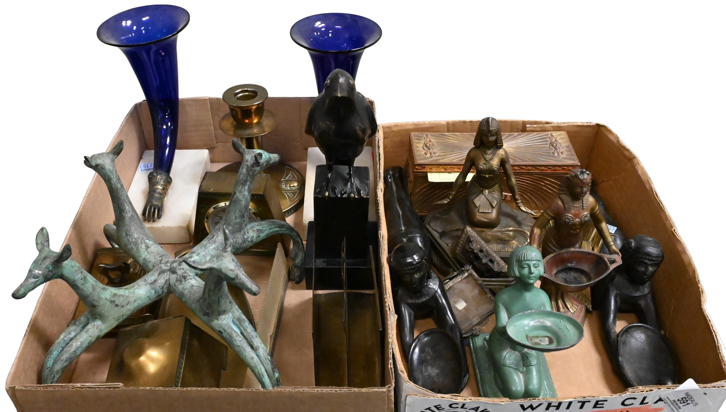 to include candlesticks, ink blotter, female figures, cobalt cornucopias on alabaster bases etc.