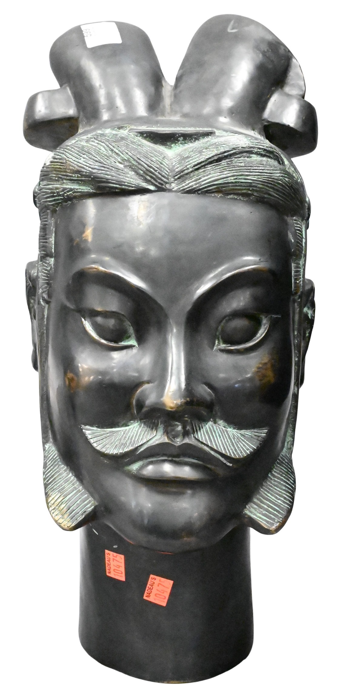 to include pair of turquoise foo dogs, a near pair of blue and white vases, blue and white garden seat, dragon handle vase, large Satsuma charger, Tang style horse